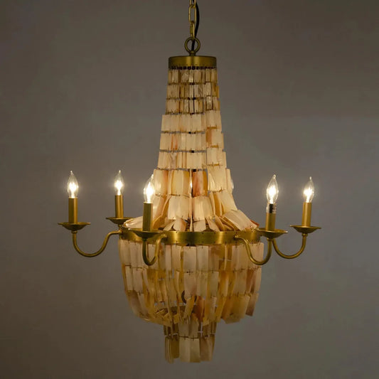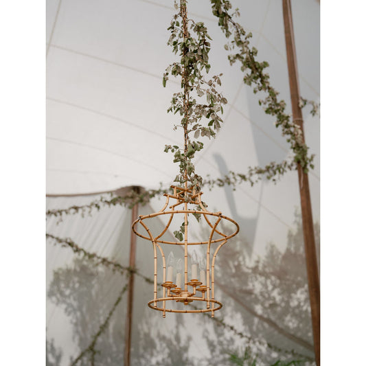 Alyssa Antique Brass Rod Suspended Jute Chandelier