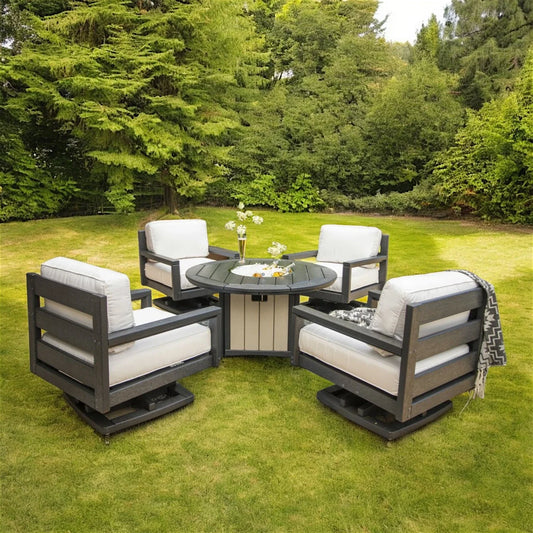 Palm Beach Poly Lumber Fire Pit Table Set Club Chairs