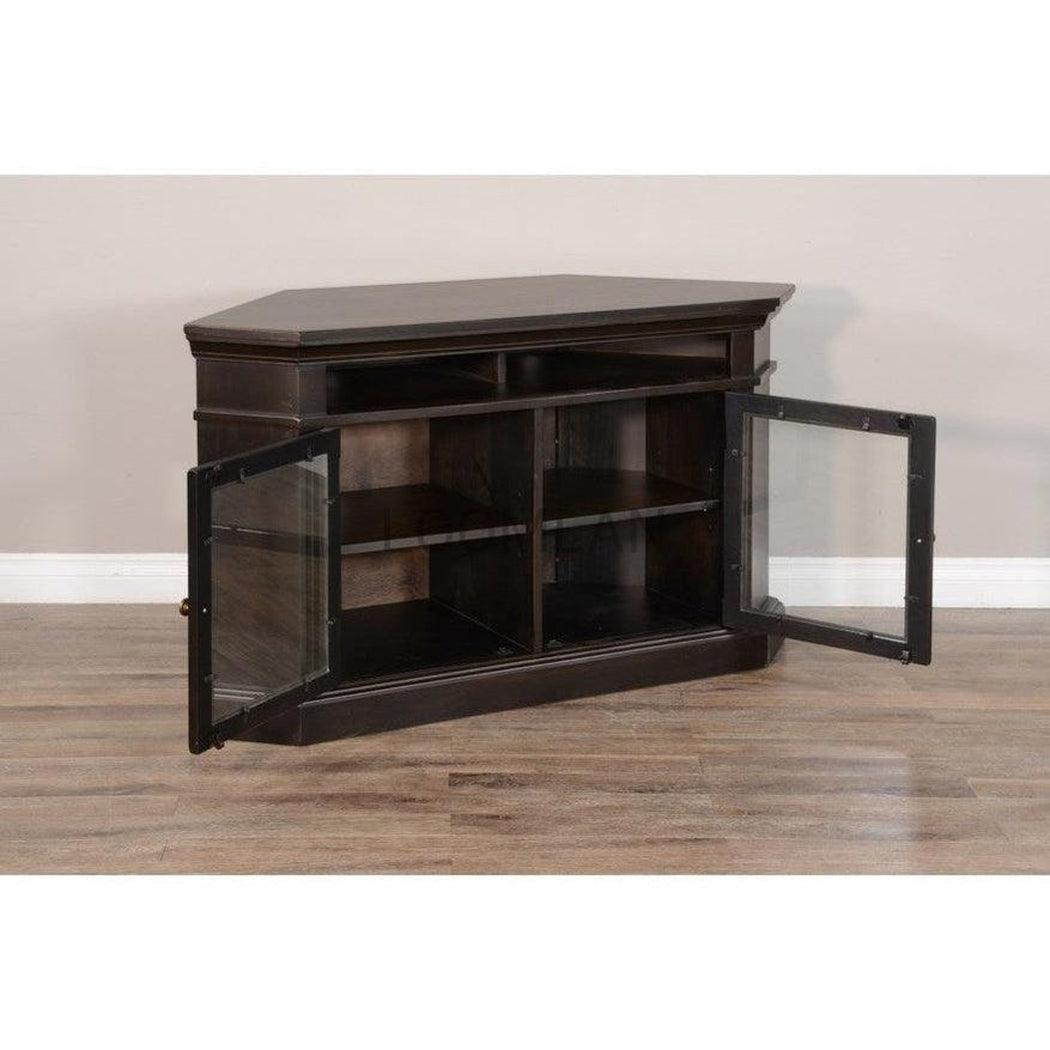 55" Wide Black Wood Corner TV Stand Media Console With Glass Doors Features: