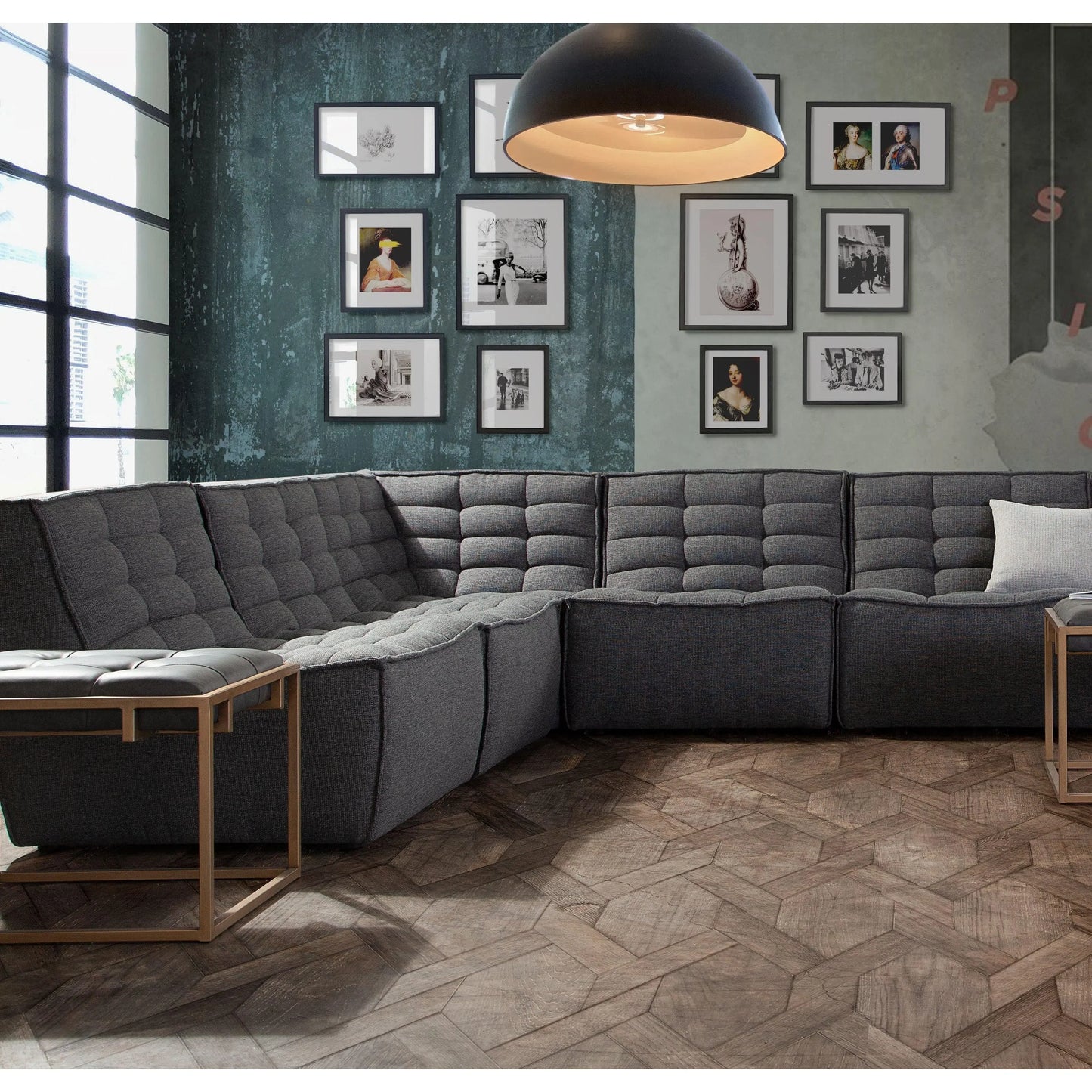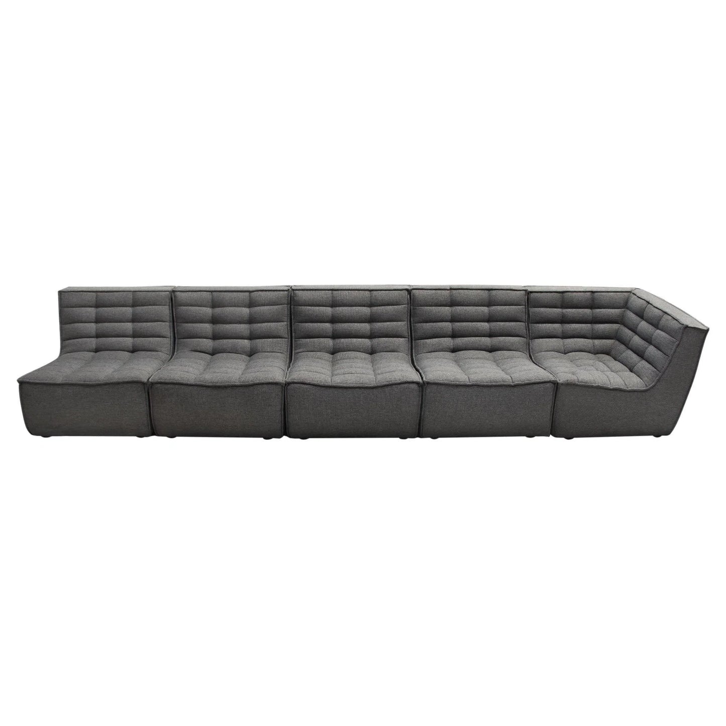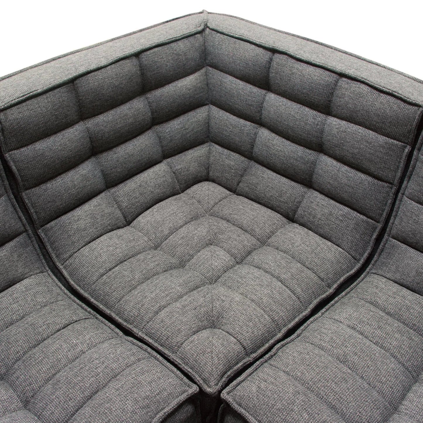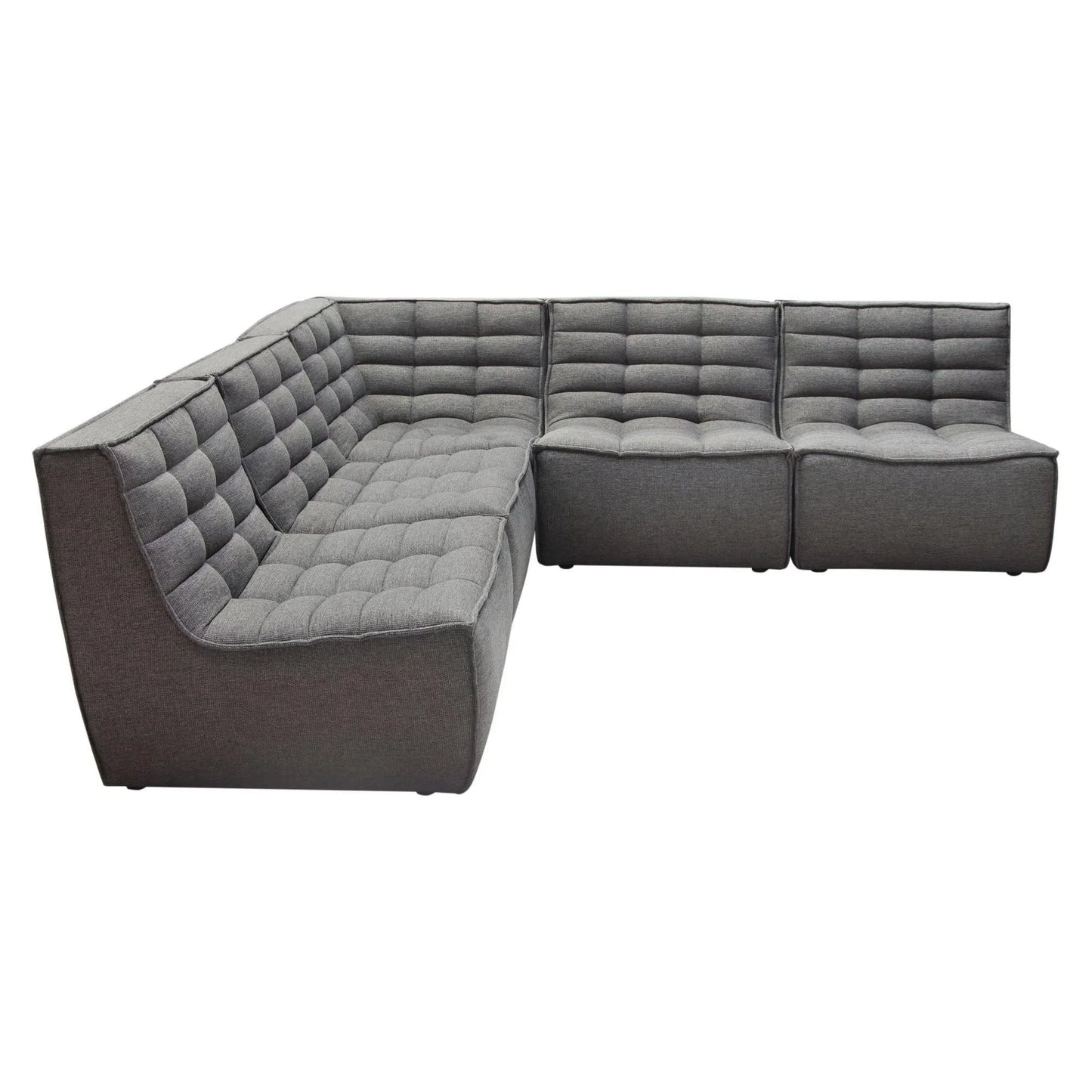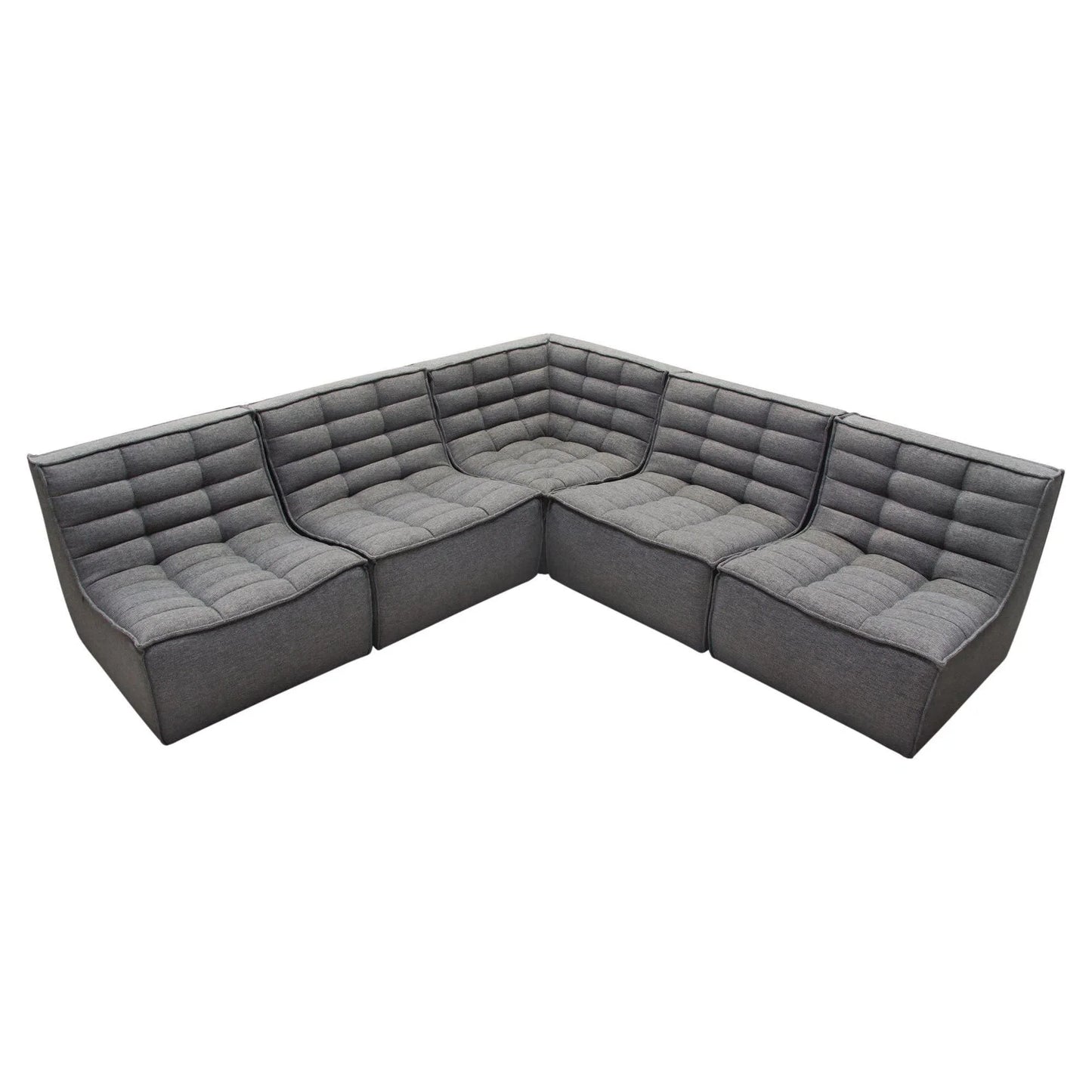 5PC Corner Modular Sectional Scooped Seat in Grey Fabric Features: