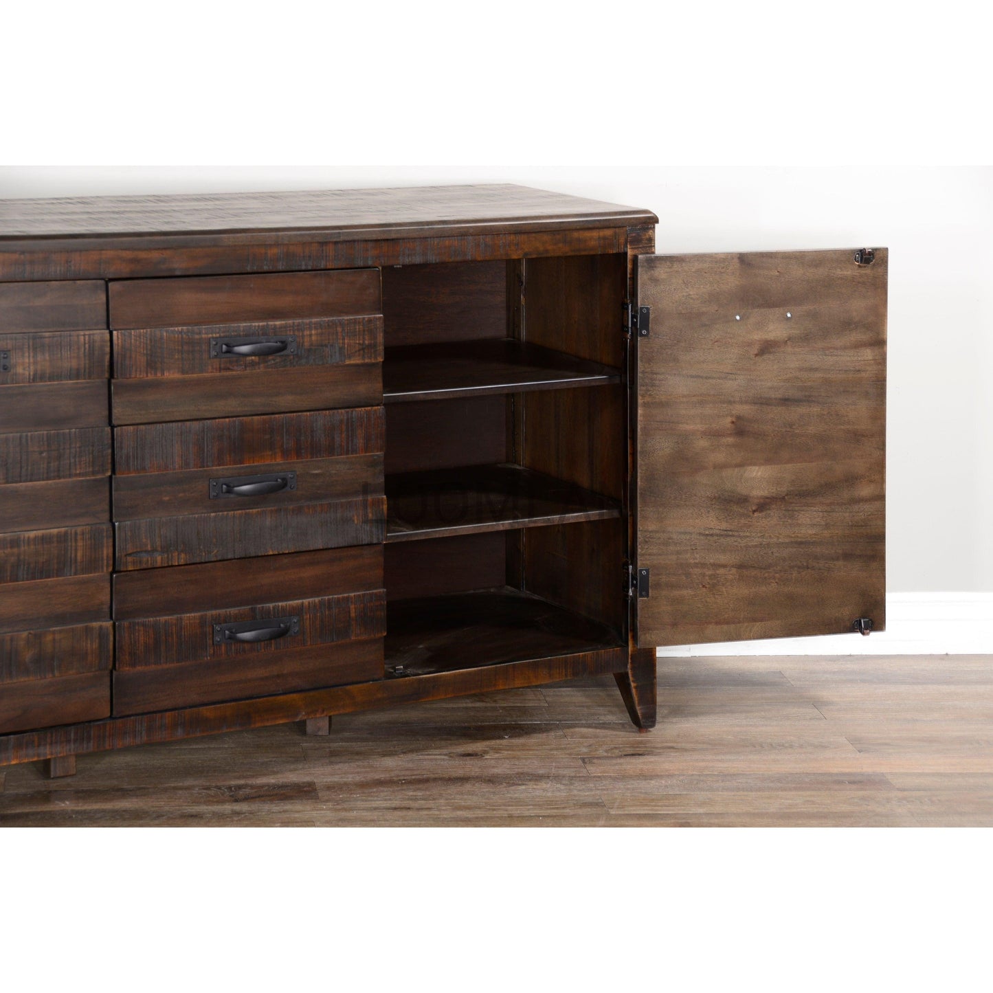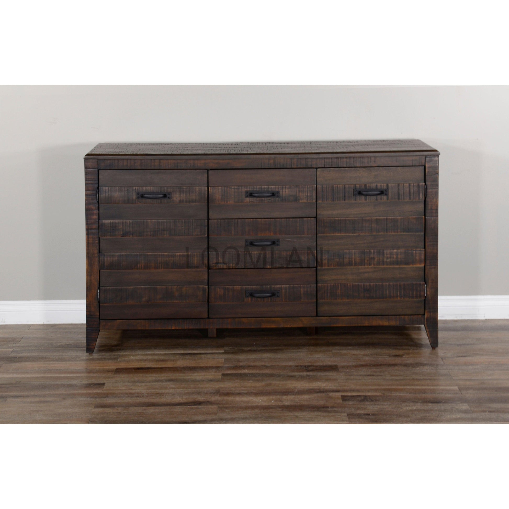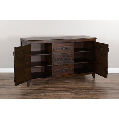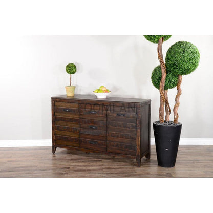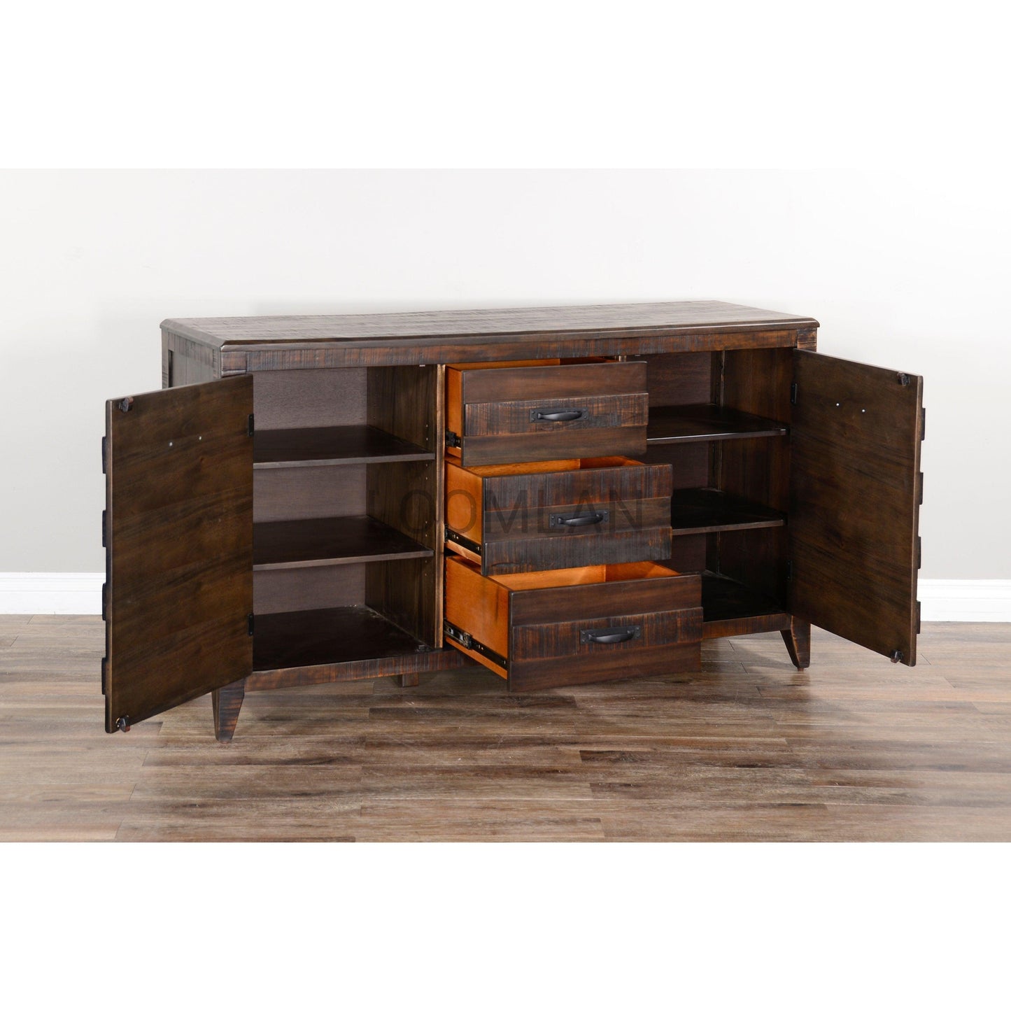 60" Dark Brown Wood Dining Server Buffet Sideboard With Drawers Features: