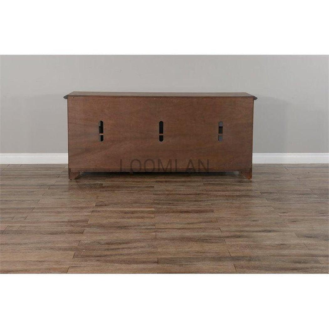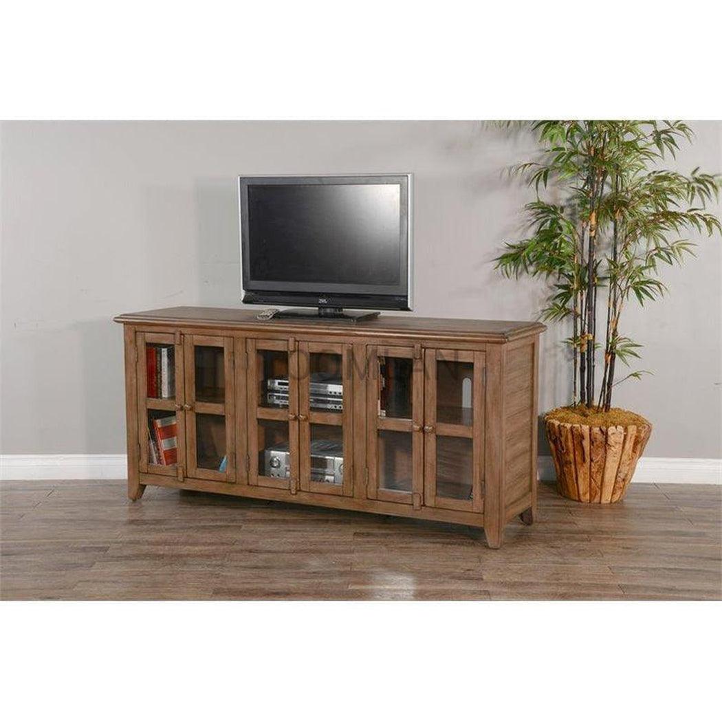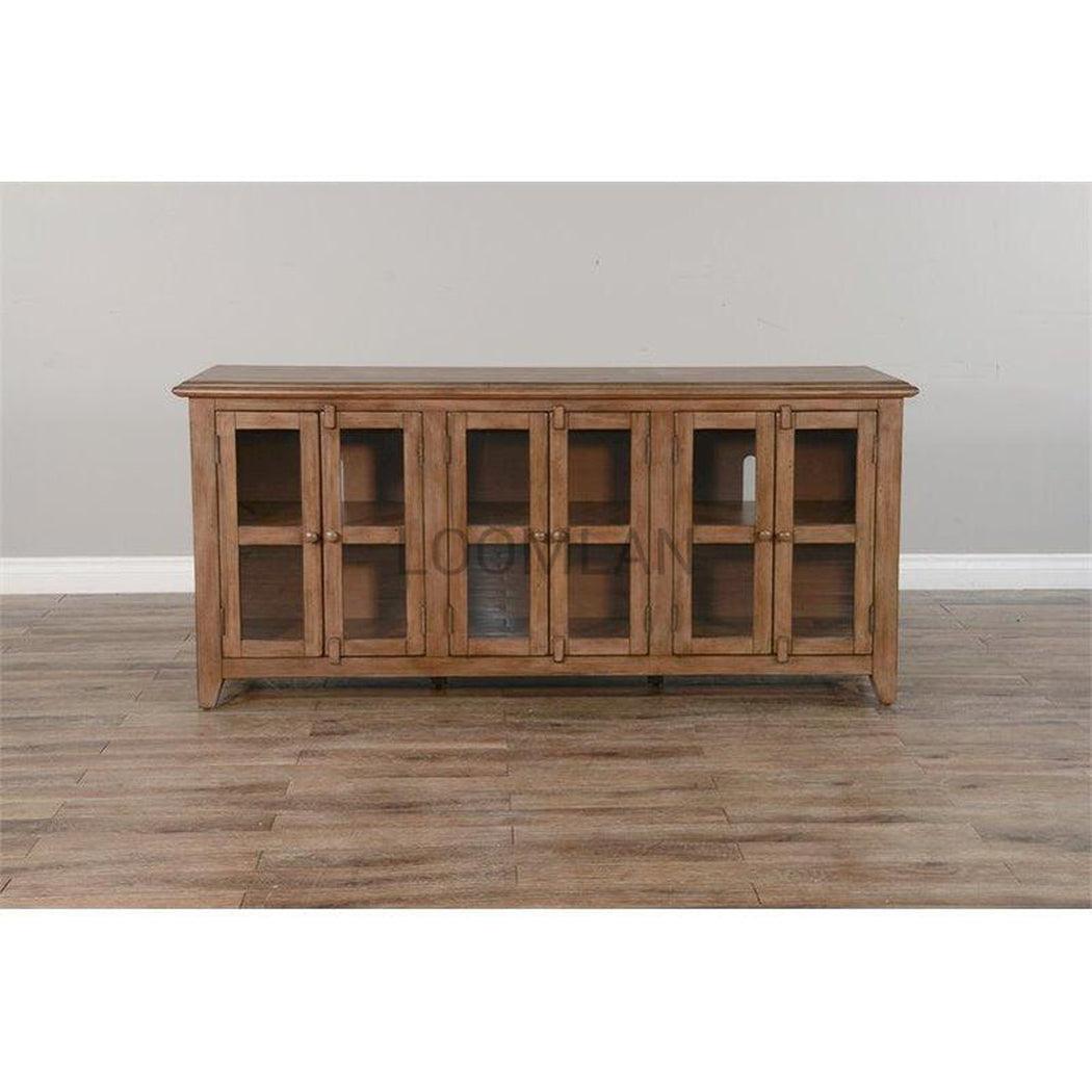 70" Distressed Brown TV Stand Media Console Glass Doors Storage Cabinet Features: