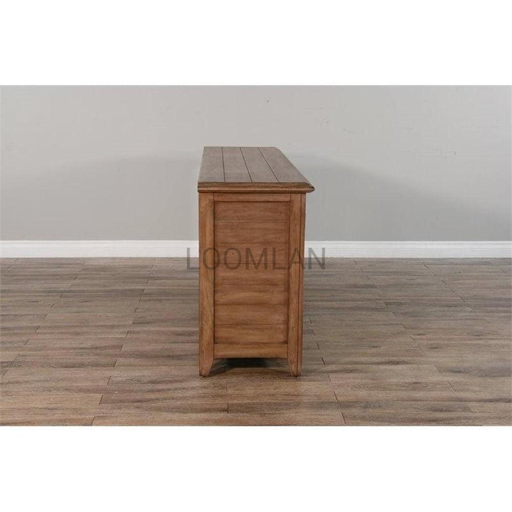 This stylish and functional 70" TV stand features a durable build from solid mahogany wood. With its spacious surface, it provides ample space for displaying decor and photos. The adjustable shelves offer additional storage options, making it perfect for any modern farmhouse or rustic room. No assembly is required.