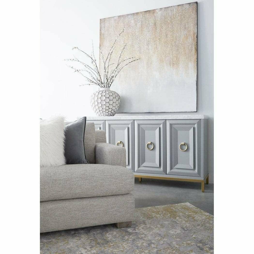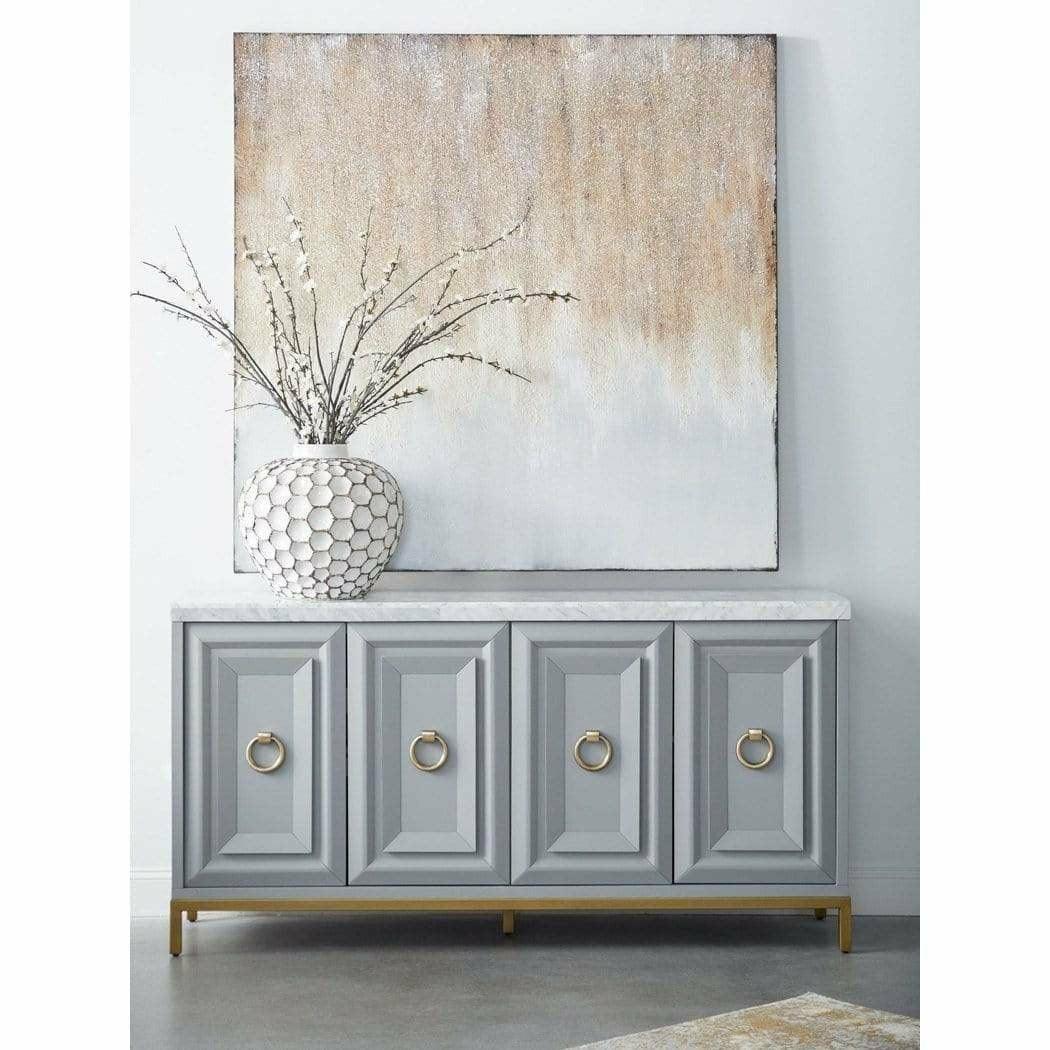 Azure Carrera Media Sideboard White Carrera Marble, Dove Gray, Brushed Gold Features: