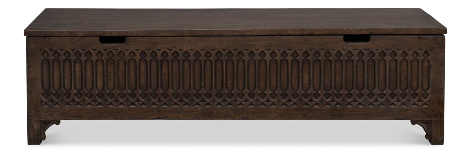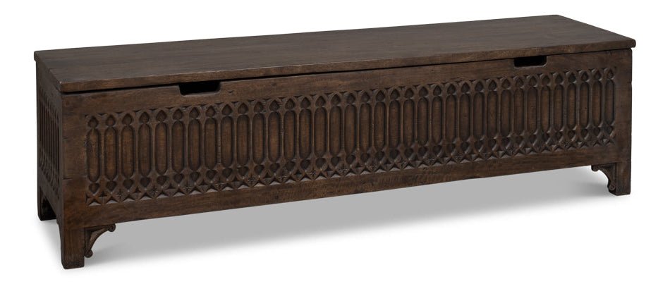 Aarush Trunk Hand Carved Wooden Storage Bench Features: