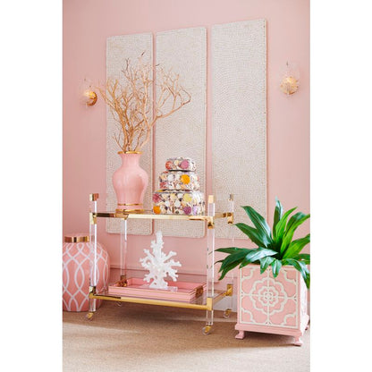 Acrylic Bar Cart Brass With Two-Tier Glass Shelves Features: