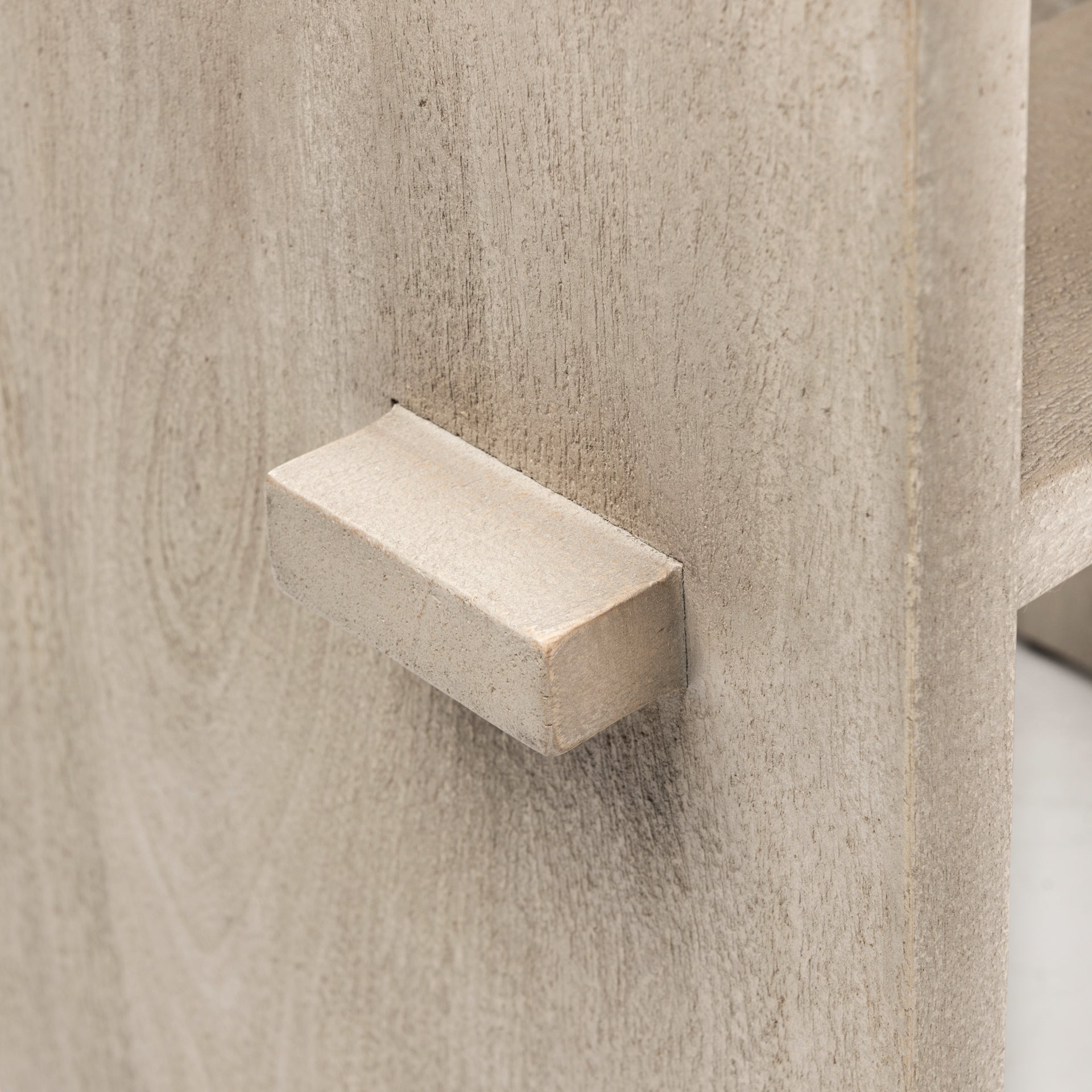 - Aida is crafted from solid mango wood, finished in a light brown tone and sanded smooth.