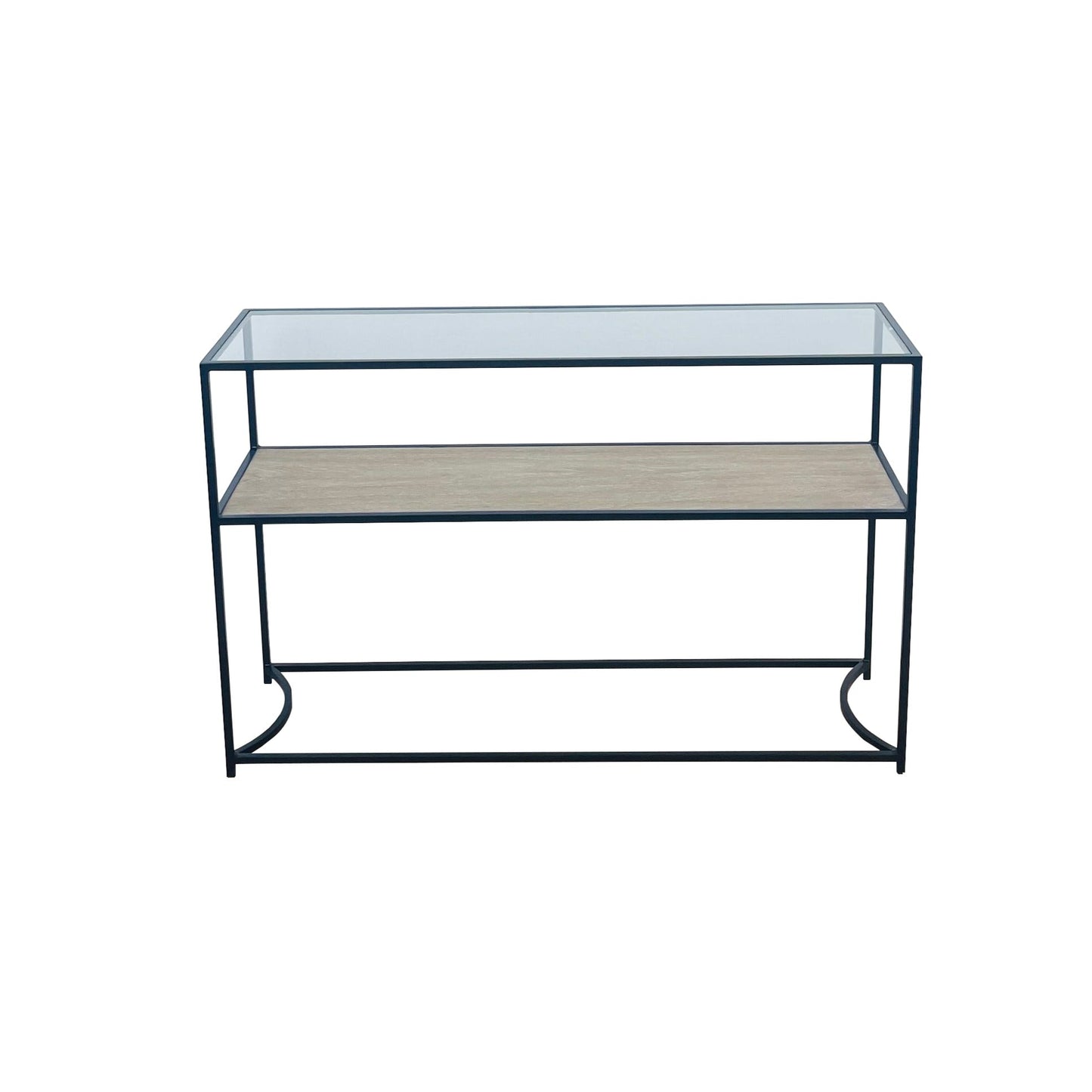 Aiden Sofa Side Table Natural With Glass And Wood Shelf Features: