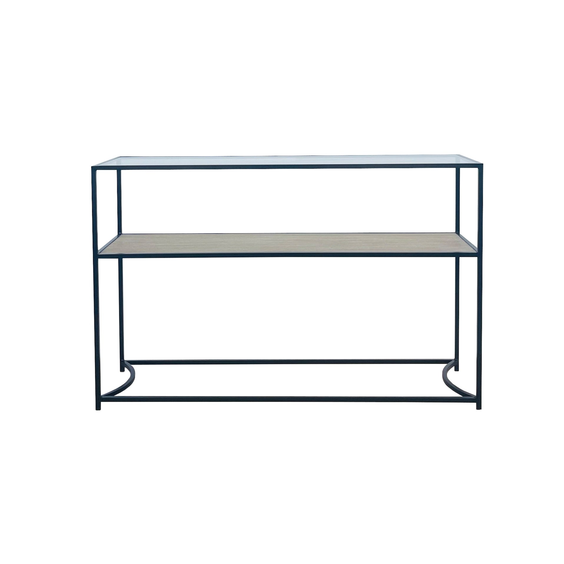 Introducing a harmonious blend of style and function, this side table complements any modern living space. Crafted with an open grain natural finish, it exudes a warm, organic feel that effortlessly enhances your room's decor. The combination of a sleek glass top and a sturdy Mindi wood shelf not only offers practical storage solutions but also adds an appealing visual contrast. Its minimalist design, paired with a matte black frame, creates a striking focal point that is both elegant and understated.