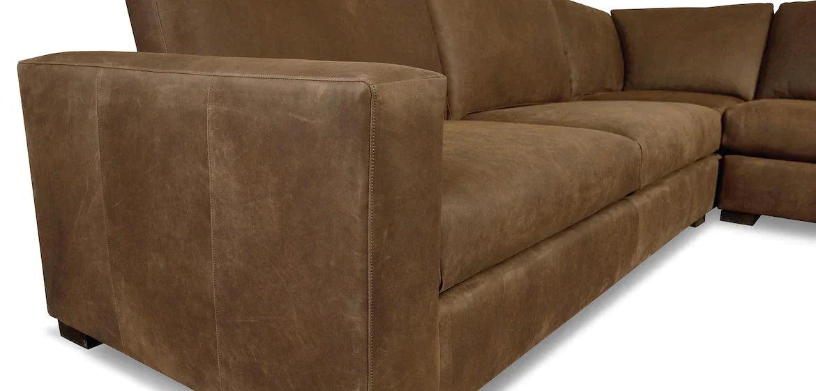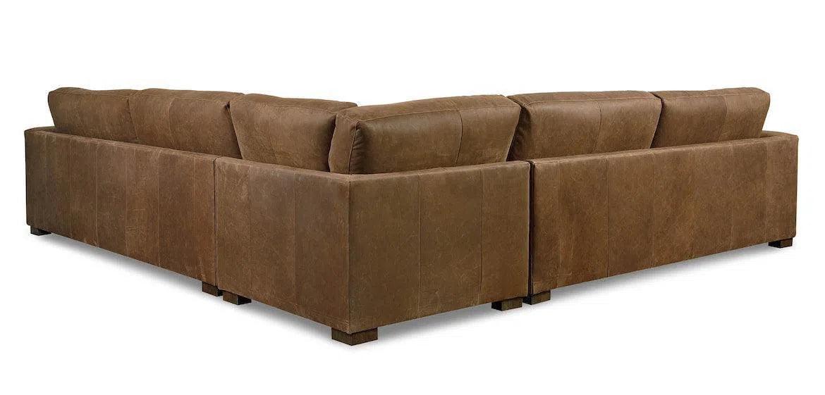 This American-made top-grain leather sectional by Uptown Sebastian meets and surpasses industry standards. The Vintage Brown color and large track arms give it a sophisticated look, while the comfortable cushion and ample space make it perfect for relaxing after a long day. At 125x125 inches, this elegant sectional is also highly functional.
