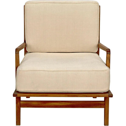 Elevate your space with the Allister Teak Wood and Rattan Arm Chair. This 100% handcrafted chair features sleek mid-century modern lines and a natural teak frame. The seat is enhanced with peeled rattan, while the cushions are soft white cotton for ultimate comfort. Made in Indonesia. Dimensions: W 29 x D 35 x H 31.5. Weight: 28lbs. Comfort and style are synonymous in this striking armchair. 100% handcrafted, the frame is natural teak with mid-century modern inspired lines. The seat is enhanced with peeled rattan, the tapered legs and arms are minimalistic chic, and the cushions are soft white cotton.