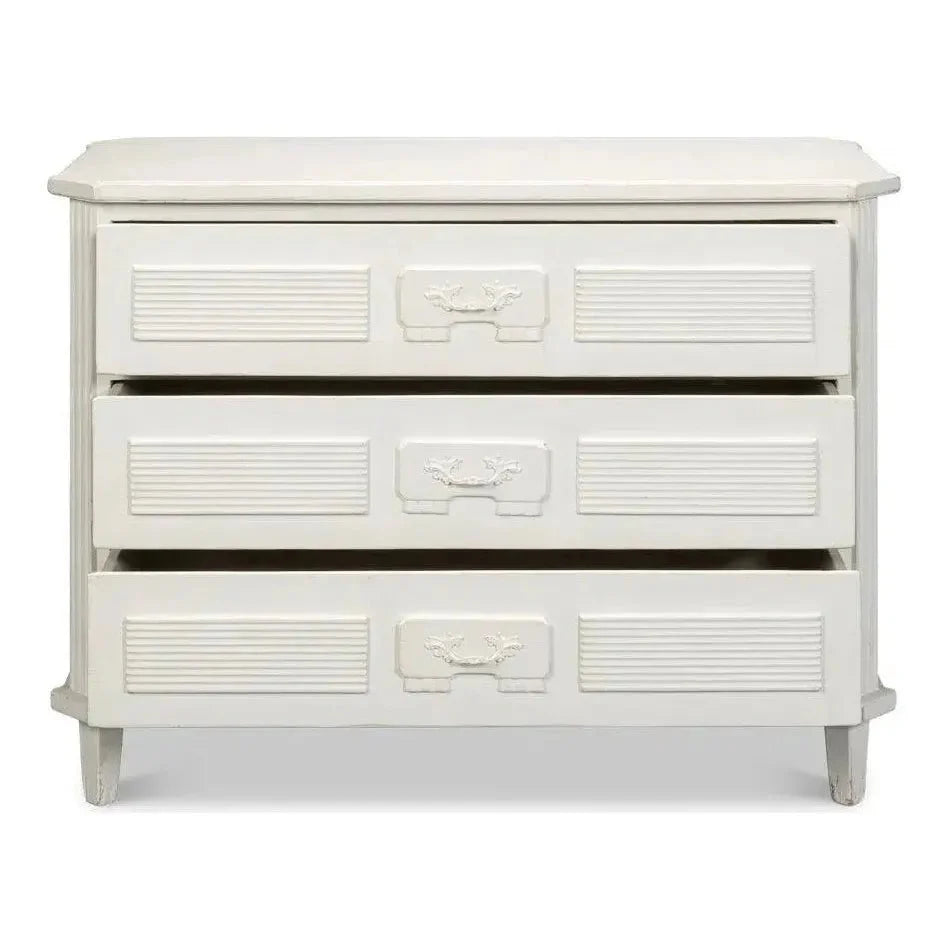 Altus Antique White Three Drawers Chest Features: