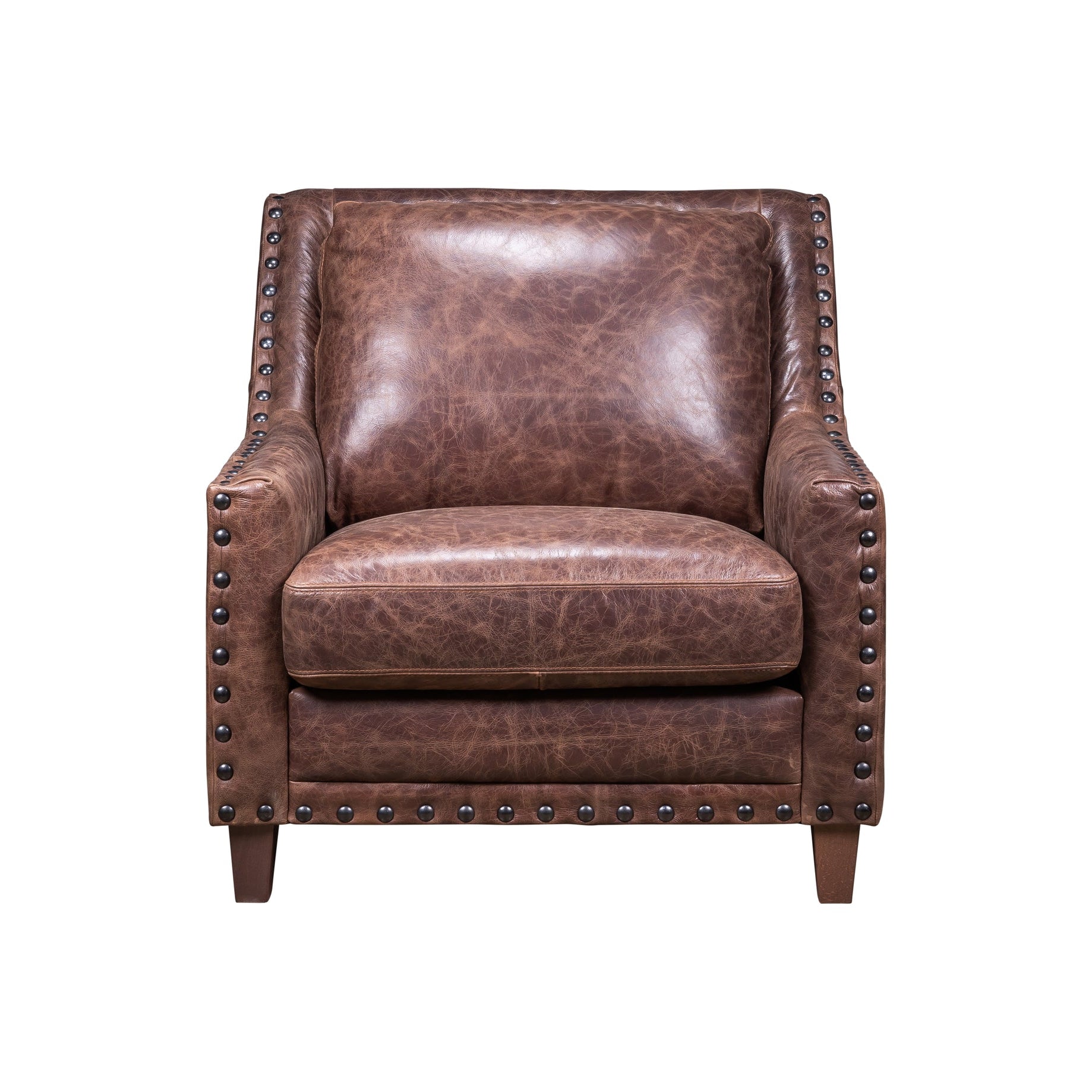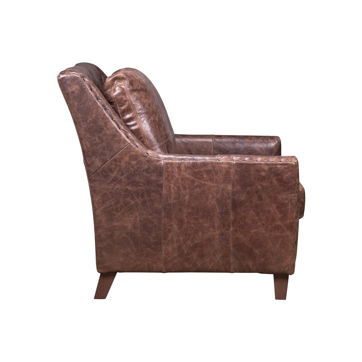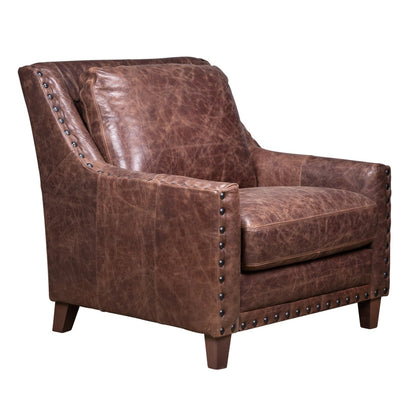 The Amalfi Chair offers a warm, inviting presence with its dark walnut wood finish and traditional studded trim. Its rectangular shape and cushioned seat provide an ideal balance of style and comfort. Angled wooden legs add a touch of charm, making it a versatile choice for both classic and modern interiors. Whether placed in a living room or study, this chair promises to be a reliable companion, inviting you to sit back and relax.