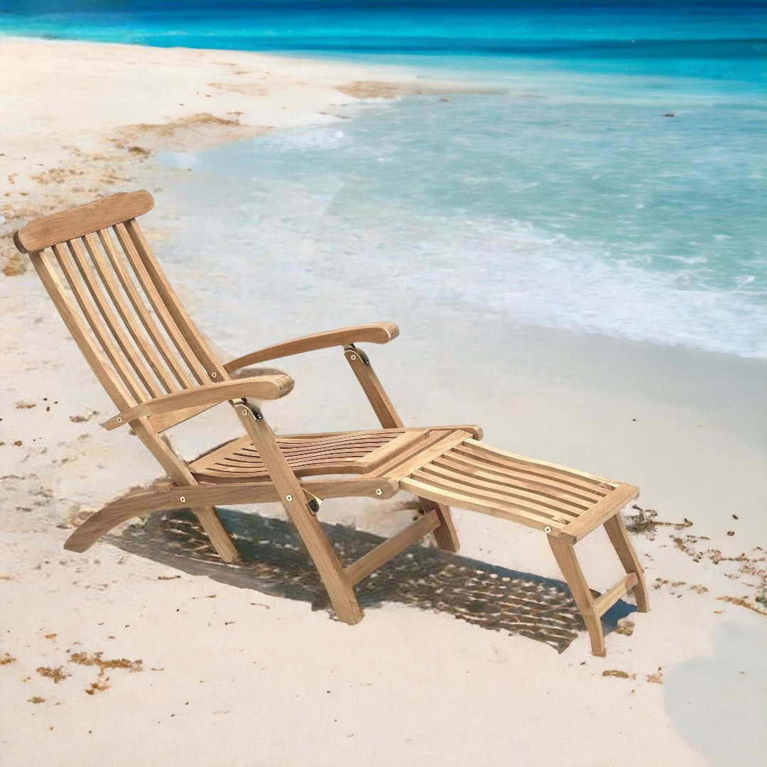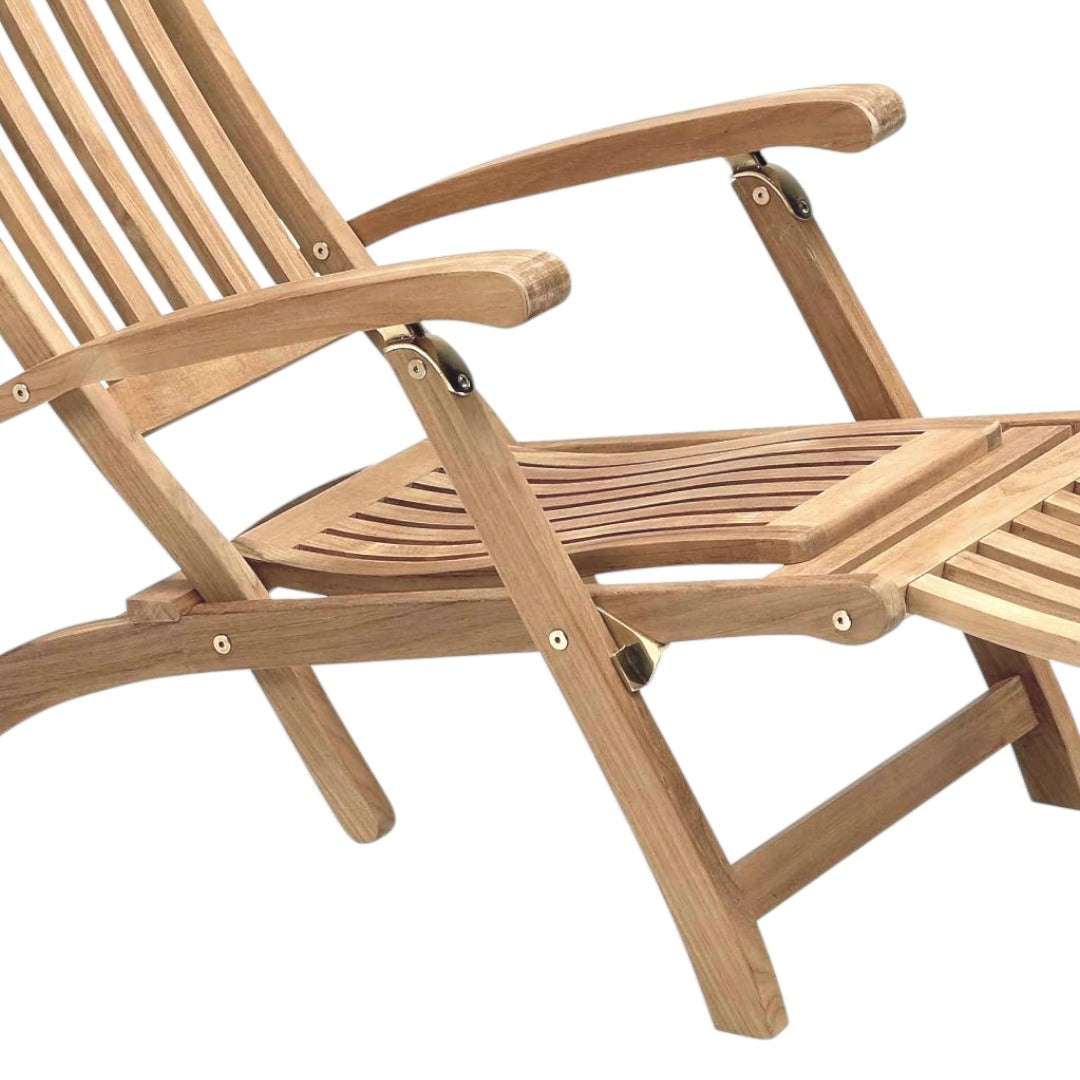 This timeless deck lounge chair was once a staple on the world's most daring ships. It's perfect for small balconies, the beach, or poolside, and is sure to become a family favorite. Made from premium teak and 304-grade stainless steel, with a four-position reclining back. No assembly is required. Steamer Folding Deck Chair: 21.5" Seat Width, 26.5" Seat Depth, 14" Seat Height, 24" Max Height, 36.2" Min Height, 27.2" Max Length, 70" Min Length.
