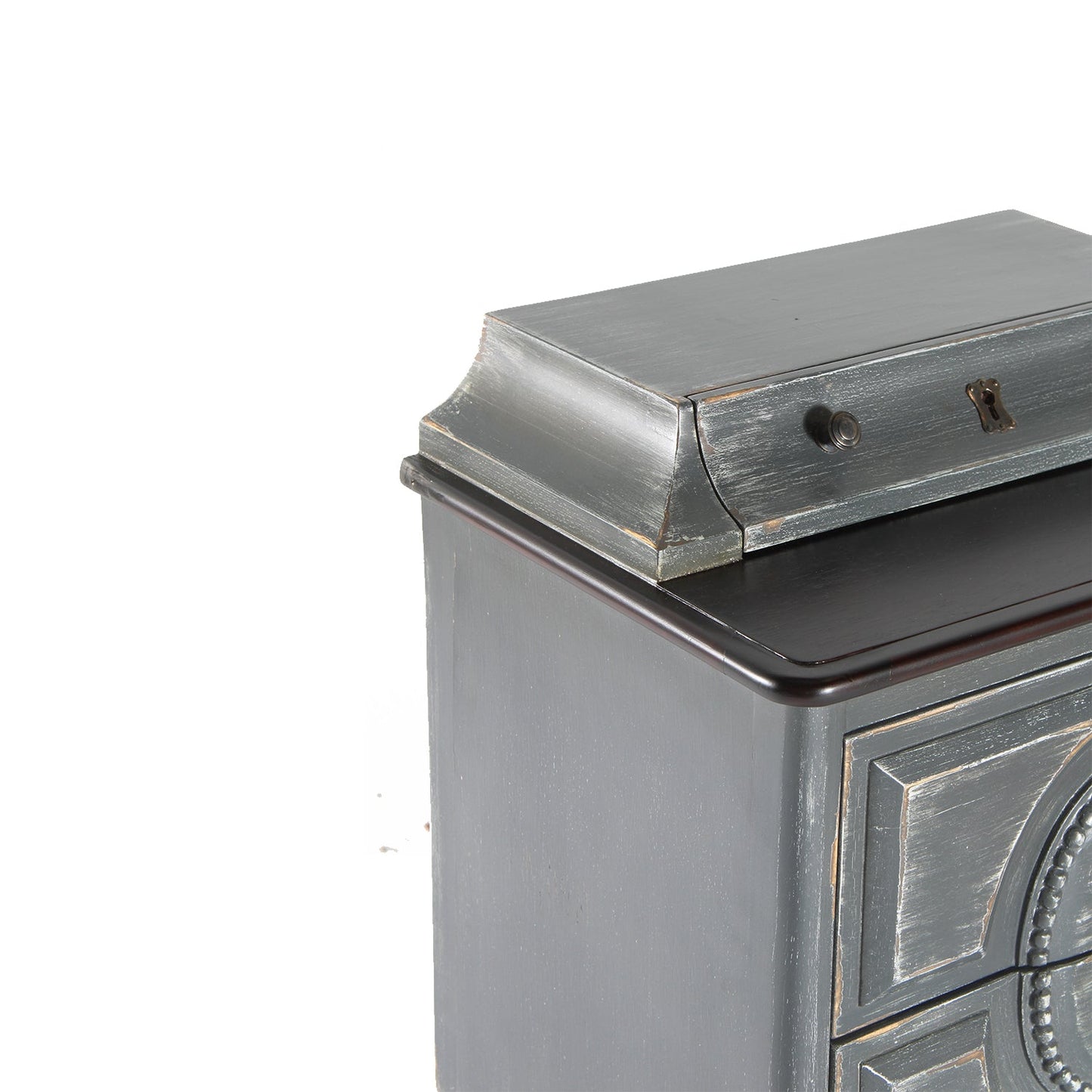 The nightstand is crafted from high-quality wood and metal, offering durability and a timeless appeal. Its sleek grey finish provides a neutral palette that blends effortlessly with various color schemes. The unique hidden drawer enhances the functionality, allowing you to keep your valuables discreetly stored away. Whether you're looking to organize your bedside essentials or add a decorative piece to your room, this nightstand is the perfect choice.