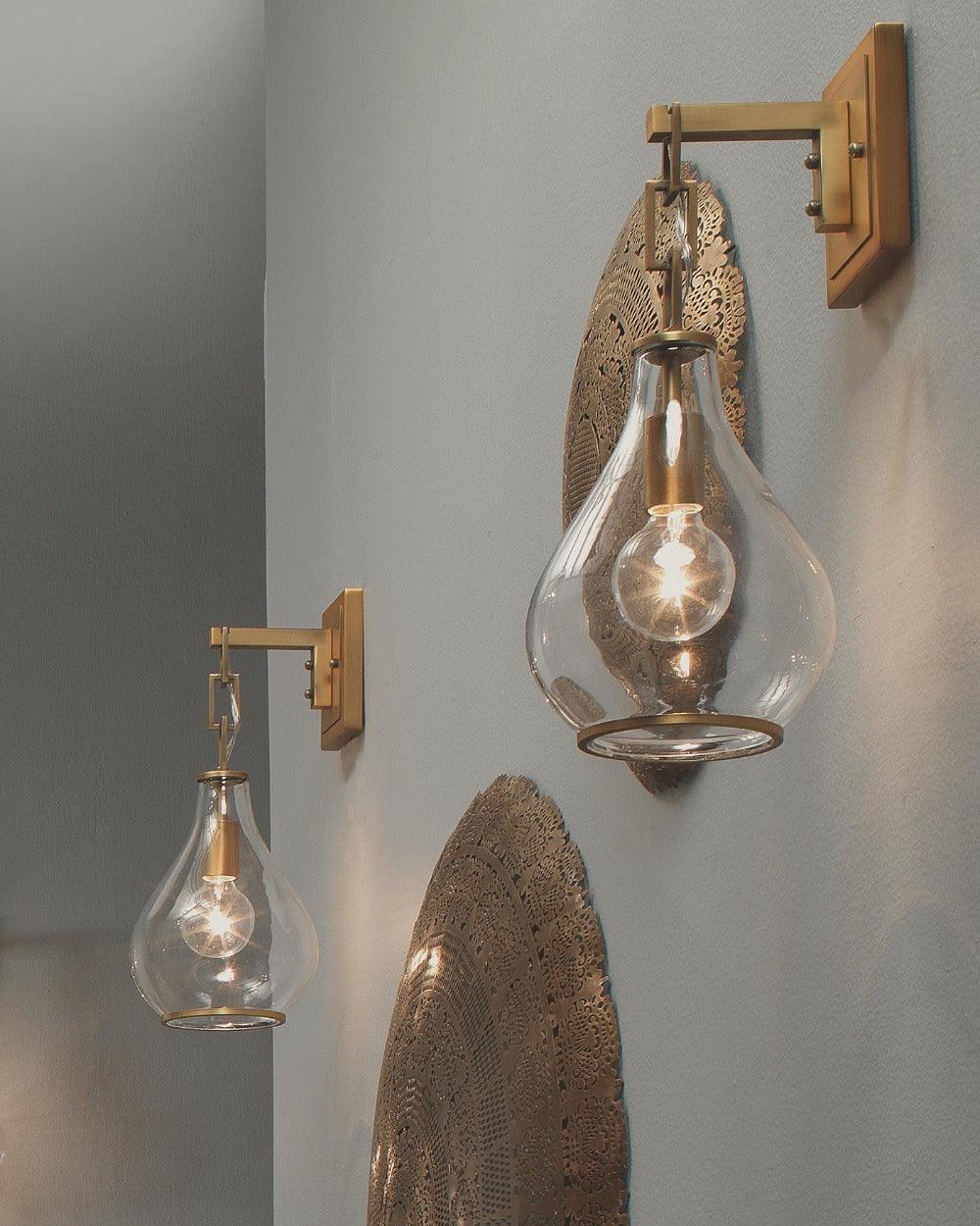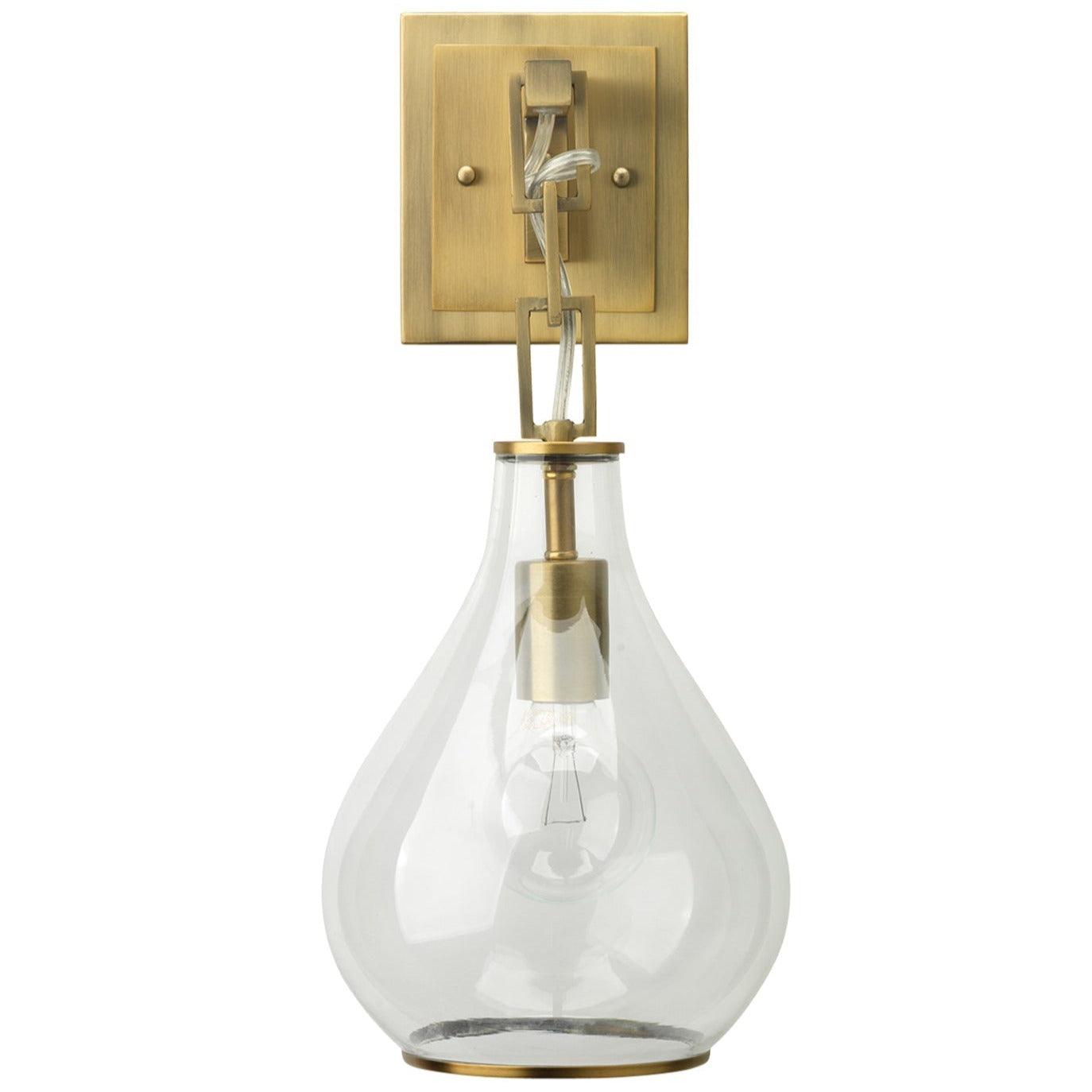 Antique Brass Clear Glass Tear Drop Hanging Wall Sconce Features: