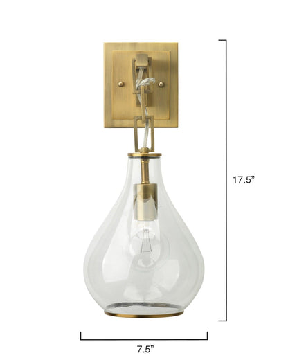 Experience ultimate luxury with our Antique Brass Clear Glass Tear Drop Hanging Wall Sconce. Every aspect of this design, from the ornate chain link pattern to the polished clear glass and antique brass accents, emanates elegance and sophistication. Elevate any room in your home and display your impeccable taste with this exquisite wall sconce. The chain link detail and refined finishes of the Teardrop Wall Sconce create a fascinating twist on a timeless silhouette, adding refined grace and opulence to any space. Transform your surroundings into a masterpiece with our Antique Brass Clear Glass Tear Drop Hanging Wall Sconce. Each intricate element, from the intricate chain link pattern to the polished clear glass and antique brass finishes, exudes elegance and brings a touch of luxury to any room in your home.