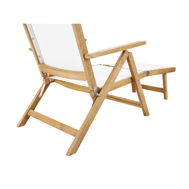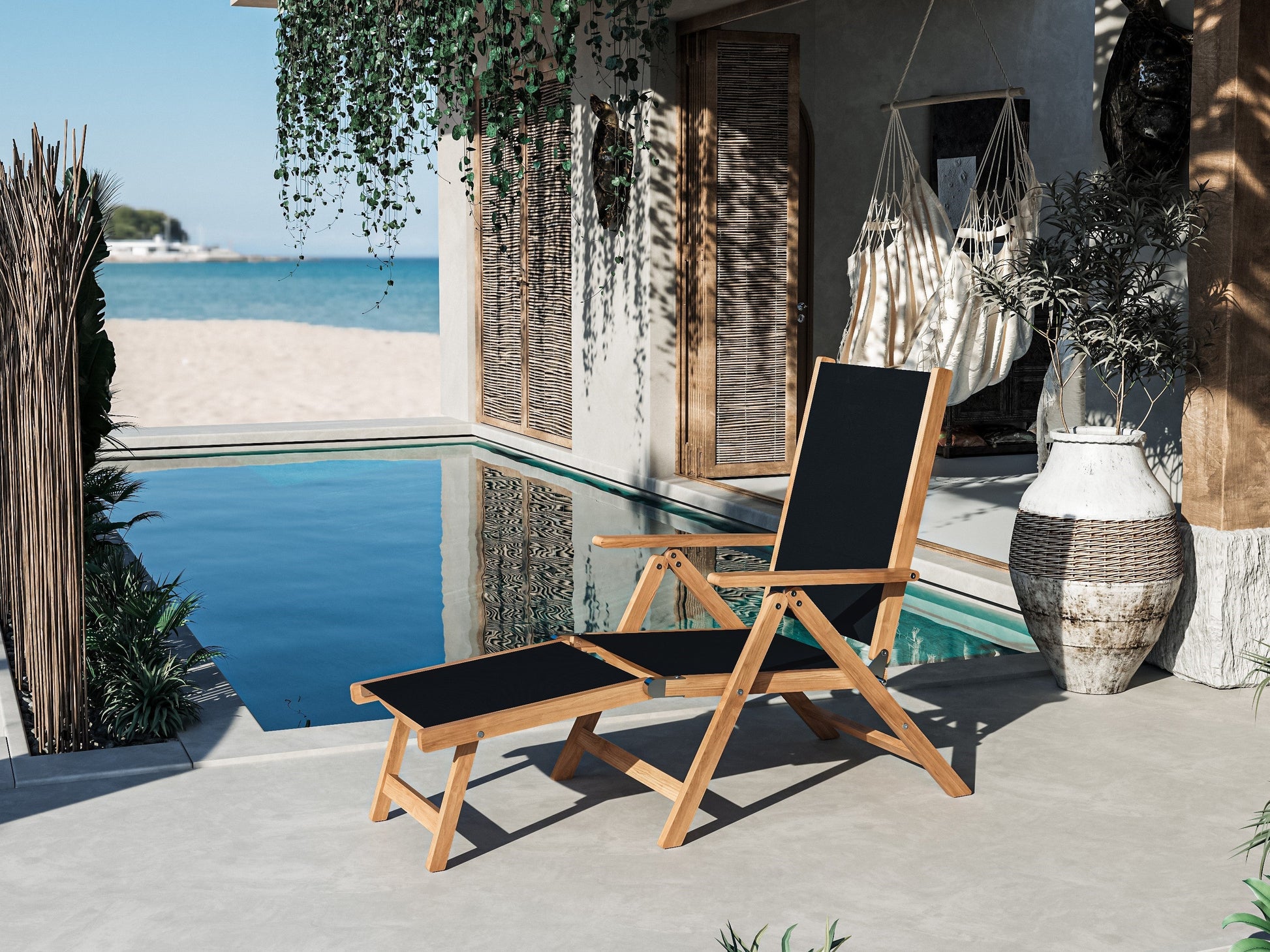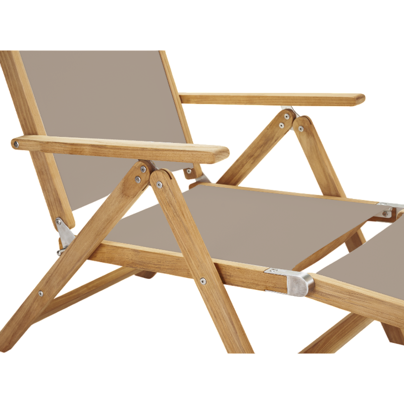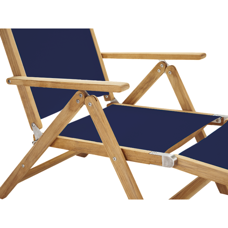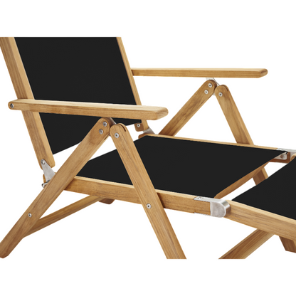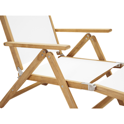 The Aquitania Deck Chair combines traditional charm with modern comfort. Inspired by the elegance of a famous steamship, this lounge chair is crafted from premium teak wood and durable sling fabric. Its solid frame ensures stability and strength, while the high-quality seat and back sling provide lasting comfort. Perfect for anyone who enjoys lounging outdoors, the chair includes a footrest for added relaxation. Whether by the pool or on the deck, this chair promises an enjoyable outdoor experience.