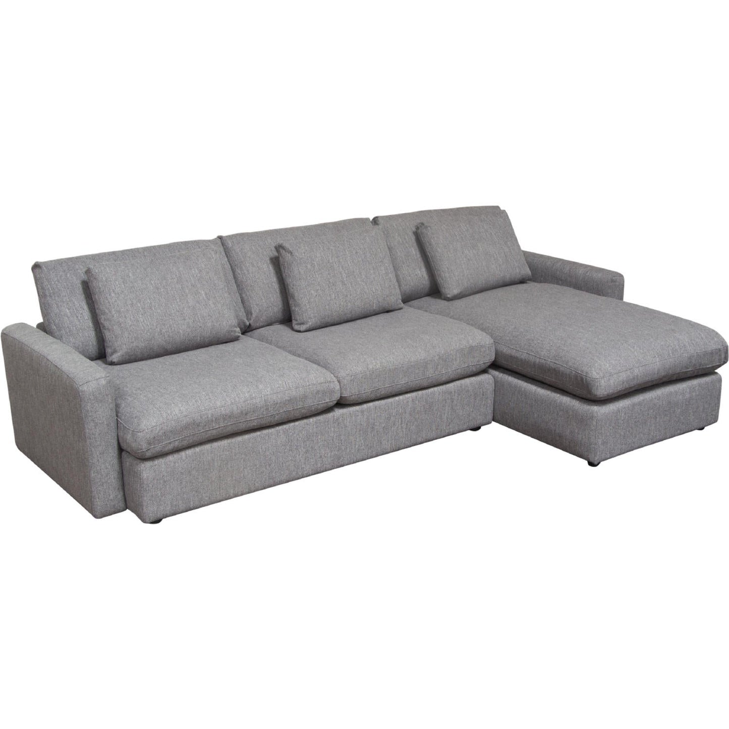 - Finish: Plush Grey Polyester Fabric, Loose Pillow Back Design with Feather Down Seating.