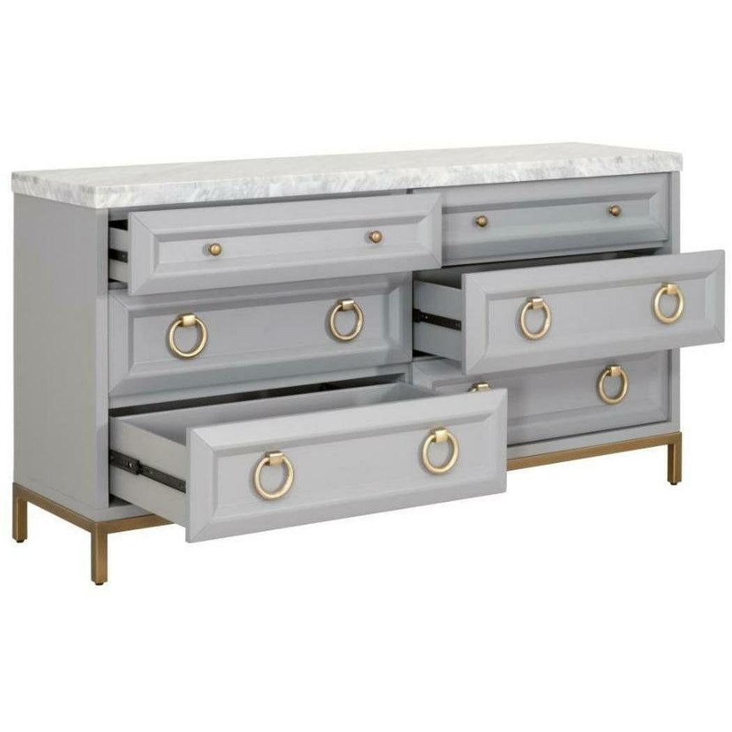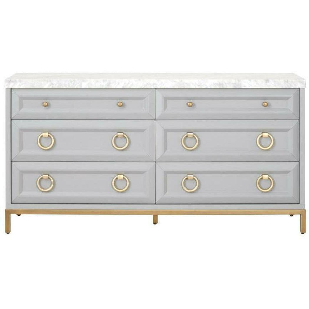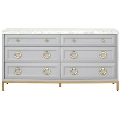 Azure Carrera 6-Drawer Double Dresser Dove Gray, White Carrera Marble, Brushed Gold Features: