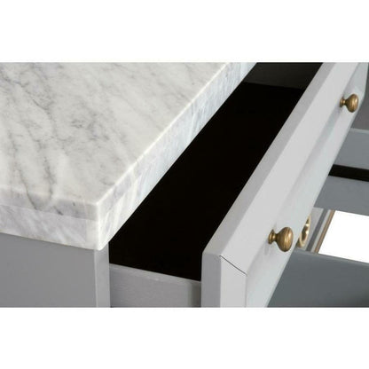 Experience indulgent luxury with the Azure Carrera double dresser. Crafted from Italian marble and dove gray wood, highlighted by brushed gold hardware, this piece exudes both elegance and practicality. The full extension drawers allow for effortless access, while the felt-lined top drawers offer a soft spot for storage. Ideal for any sophisticated bedroom setting, this magnificent double dresser boasts a stunning marble top, gray and white tones, and gleaming hardware. Featuring six spacious drawers with full extension metal glides, including two lined with plush felt, this dresser elevates your space with ease and sophistication. Add a touch of exclusivity to your transitional bedroom with this exceptional piece made from 100% natural Italian stone.