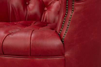 Discover the ideal combination of comfort and enduring style with the Bastian Top Grain Leather Armchair. Offered in four sophisticated colors—New Rouge, Britain Green, Newark Brown, and Tan Brown—this armchair showcases classic English design through its rounded silhouette and tufted detailing. Upholstered in premium top-grain leather, it features a deep cushioned seat for superior comfort.