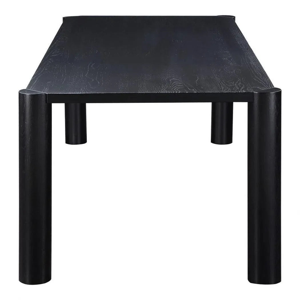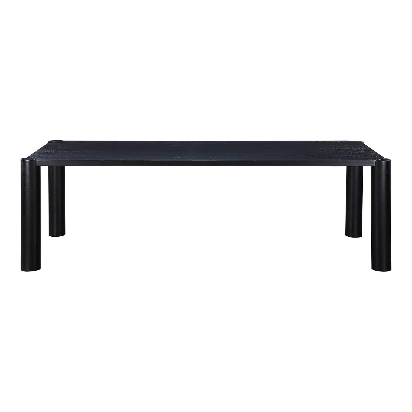 Some assembly required, Comfortably seats 10, Leg assembly leaves open design option, Blackened, solid white oak with a semi-gloss finish 96" Solid Oak Wood Black Rectangular Post Dining Table. Isn't it great to have options? The Post dining table leaves it up to you for its leg design. Coming in two sizes, this sweet new table series was conceived to allow each leg post to attach either on or off its corners, a rotation of 90 degrees, for a stately, distinguished look. A natural beauty in solid black oak with a semi-gloss finish, this dining table shows off oak's beautiful grain patterning and shades.