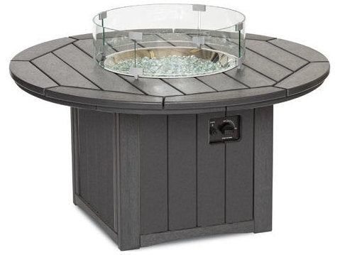 The Palm Beach Poly Lumber Fire Pit Table Set With Club Chairs includes a 5-piece set that offers year-round enjoyment of the weather. Whether it's a spring day or a cool autumn evening, you can bask in the sun or cozy up with a book and blanket in optimum comfort and style. The cushions, available in various colors and fabric styles from Sunbrella, effectively drain water after rain. The set includes 1 round fire pit table and 4 swivel rocker club chairs, with your choice of frame and Sunbrella cushions.