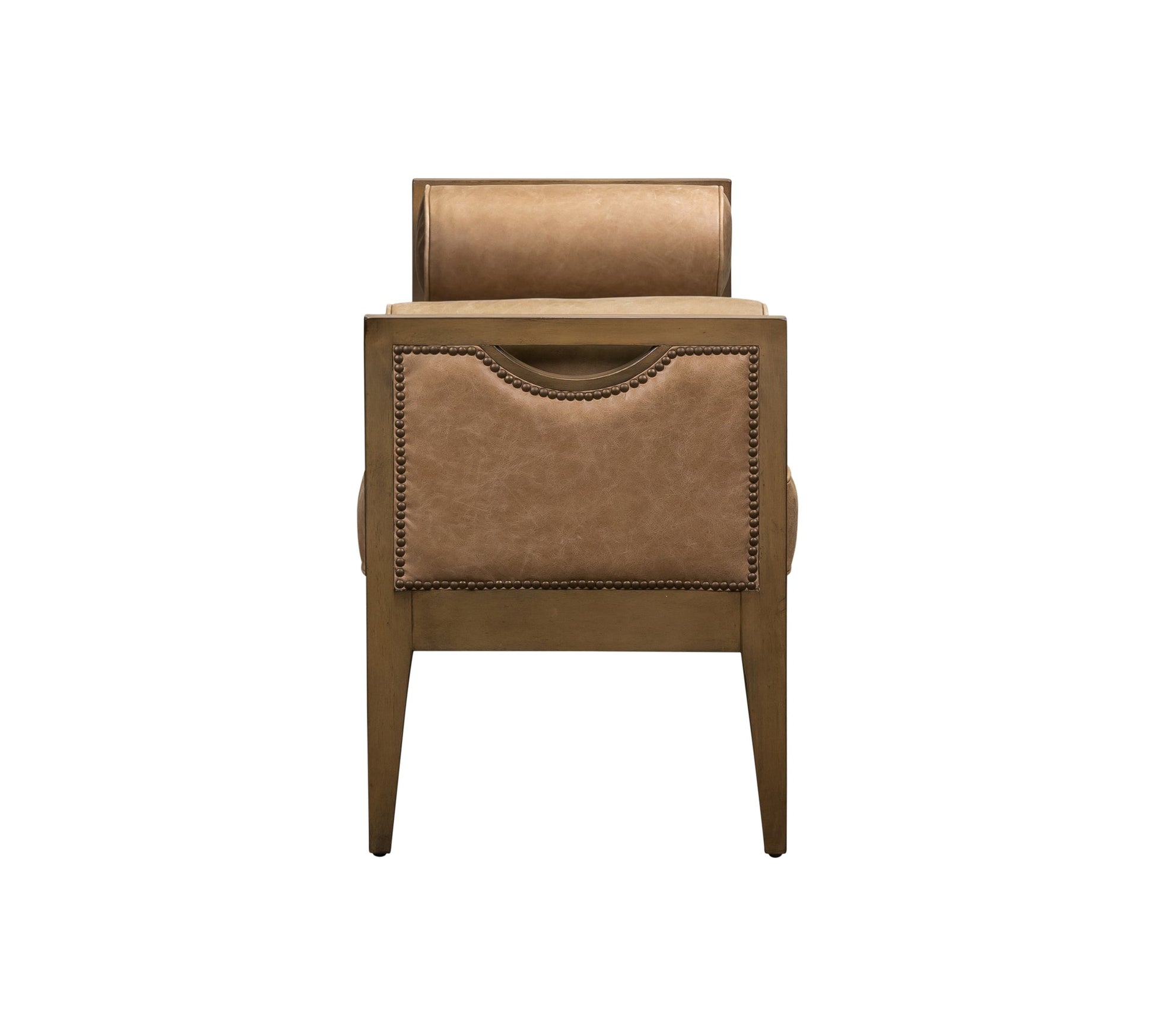 The luxurious Beacon Hill City Scale Bench in Collins Celadon is designed to elevate any living space. Crafted with supple leather, this rectangular bench combines elegant style with comfort. The soft, tan leather finish adds a touch of sophistication, while the nailhead trim provides a classic detail that enhances its appeal. The bench's backless design allows it to be versatile, fitting seamlessly into various room styles, whether placed in a living room, entryway, or bedroom.