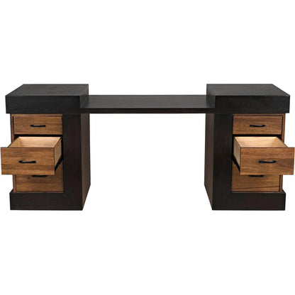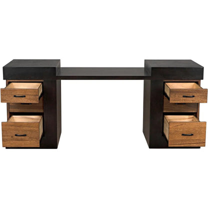 Bentley Desk, Dark Ebony Walnut Wood Unique Desk With Drawers Features: