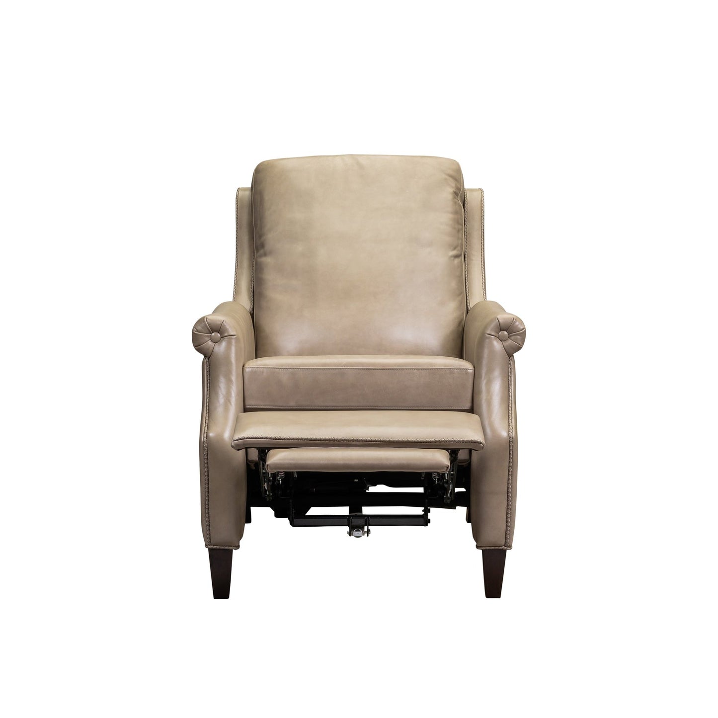 The Billings Power Recliner is available in Wakefield Earth and McCann Mushroom finishes, offering a blend of traditional design and modern comfort. Crafted from rich hand-rubbed leather, foam, and wood, this recliner exudes elegance while providing optimal comfort. Its sleek armrests are exquisitely tailored with pleat and button detailing, while the frame features a woven x-stitch design, adding a refined touch. The recliner's dark coffee wooden legs complement the leather upholstery, enhancing the overall classic aesthetic. Whether placed in the living room or study, this chair offers the perfect retreat for relaxation.