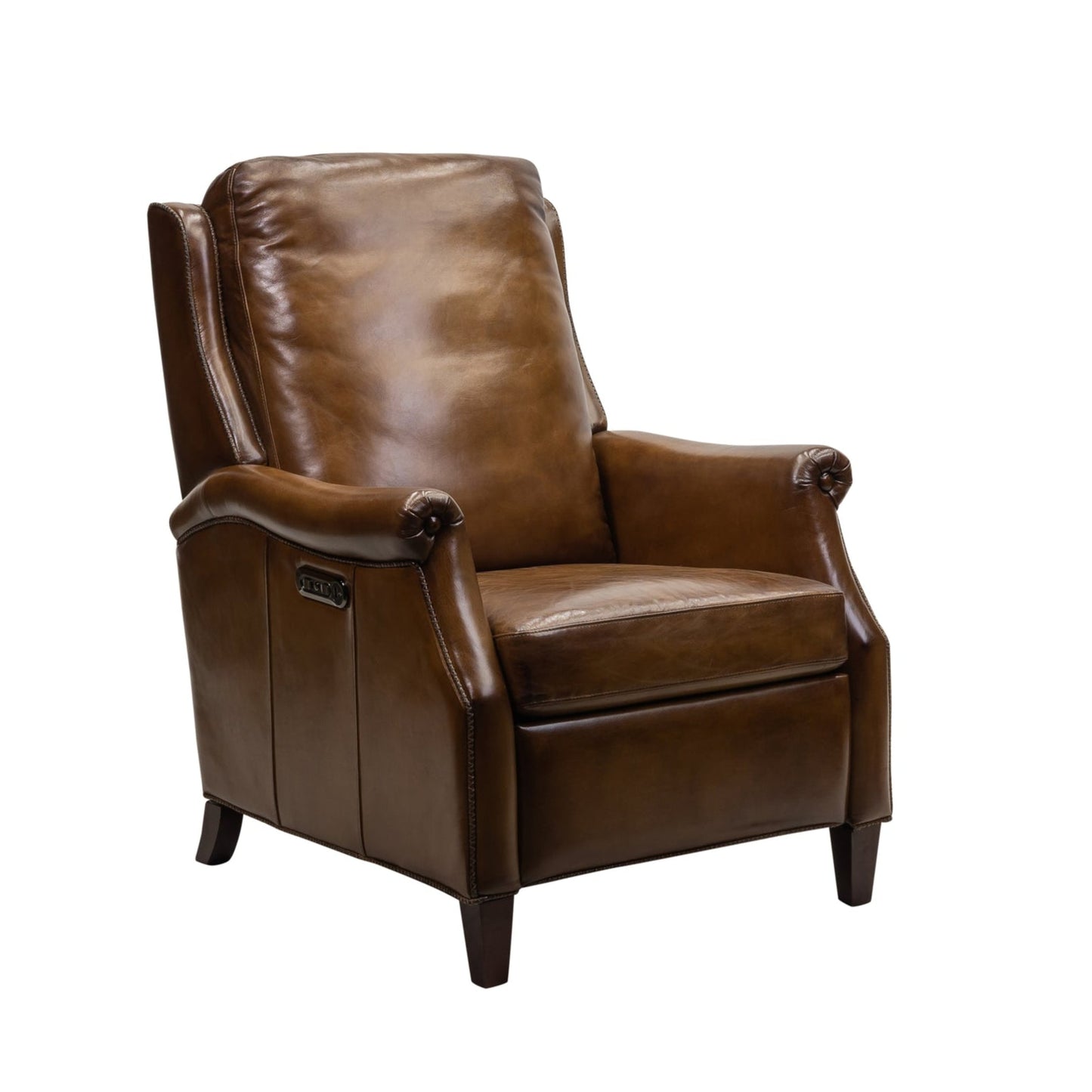 The Billings Power Recliner combines a classic design with modern comfort, making it a perfect fit for any home. Wrapped in durable leather upholstery, this recliner is easy to maintain and ensures long-lasting quality. The deep tones of the leather, coupled with its finely tailored details and wood finishes, create a warm and inviting atmosphere in your home.