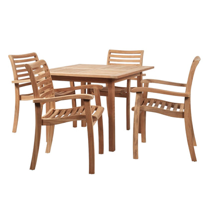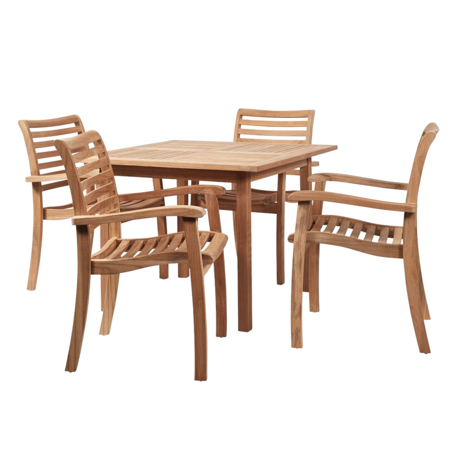 Birmingham 5-Piece Square Teak Outdoor Dining Set with Stacking Armchairs Features: