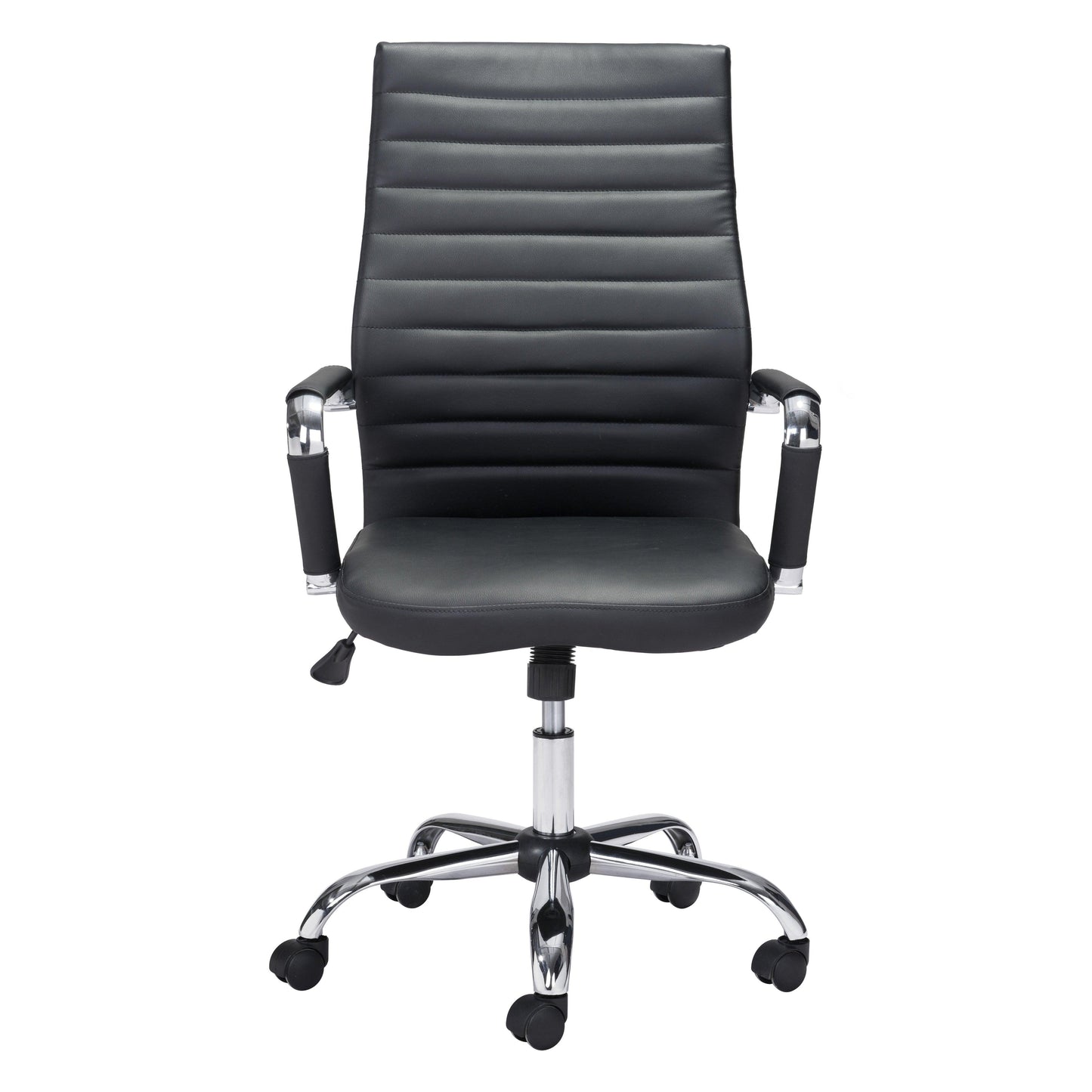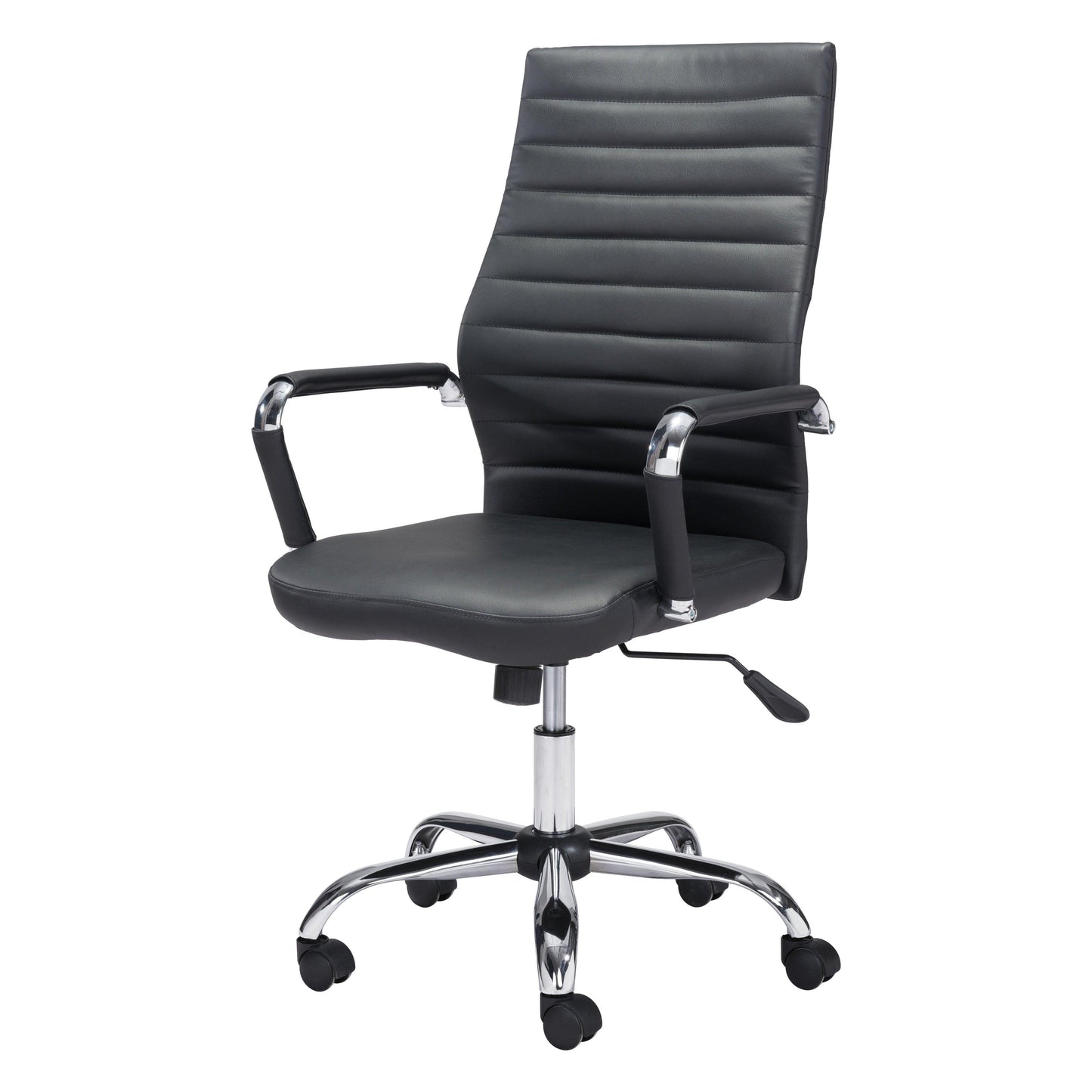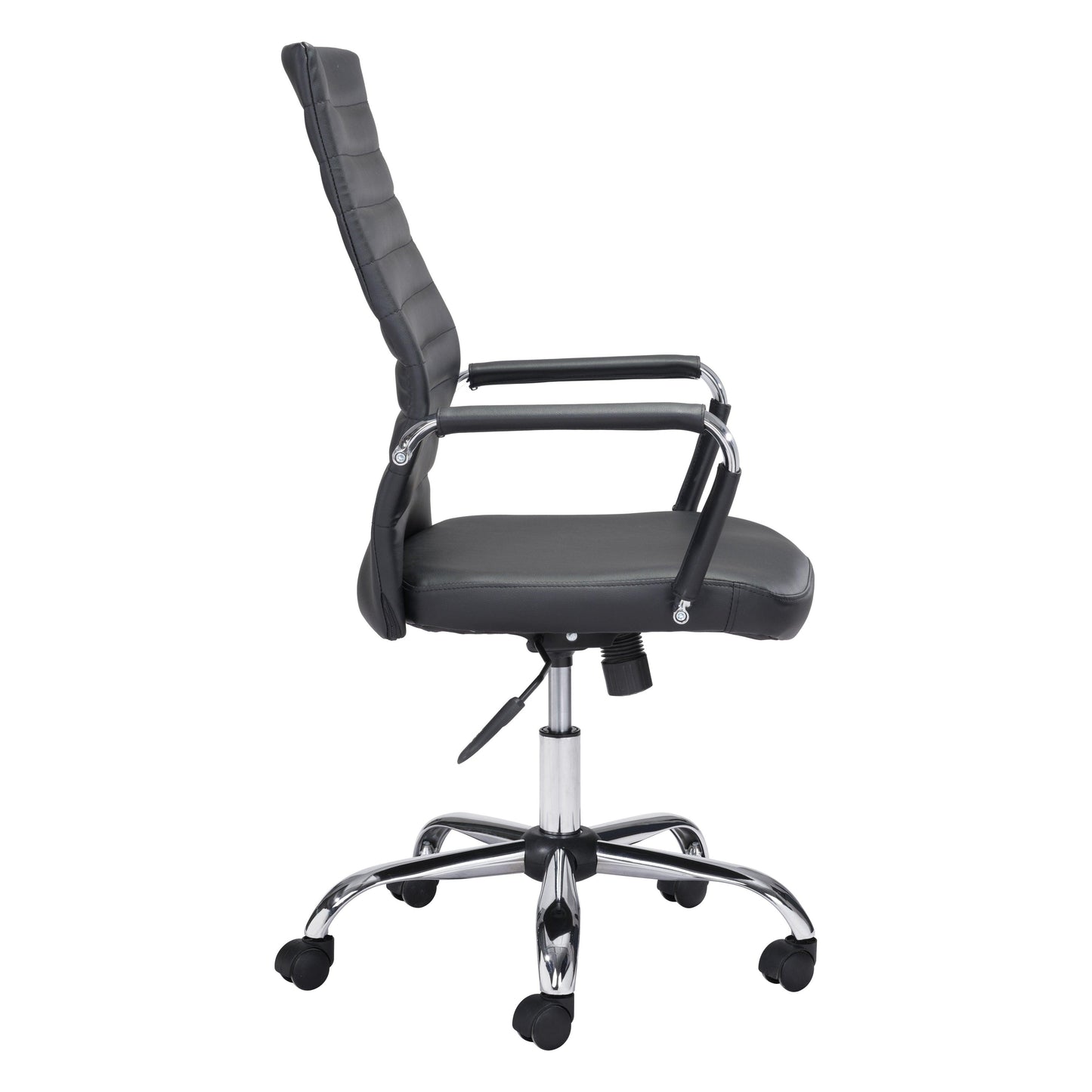 Effortlessly conquer your workday with the Primero Office Chair Black. This sleek armchair boasts a rolling design and faux leather upholstery for a classic touch. With an electroplated finish and steel construction, it can support up to 220 lbs. Plus, the seat tilt lock and adjustable height provide maximum comfort. Assembly is a breeze with tools provided. Get your work done in style with this classic armchair, showcasing faux leather upholstery and rolling design. Set it behind a mahogany desk for a traditional look.