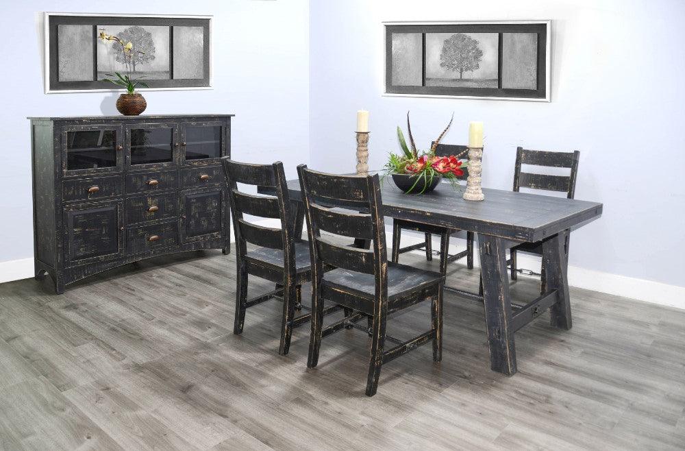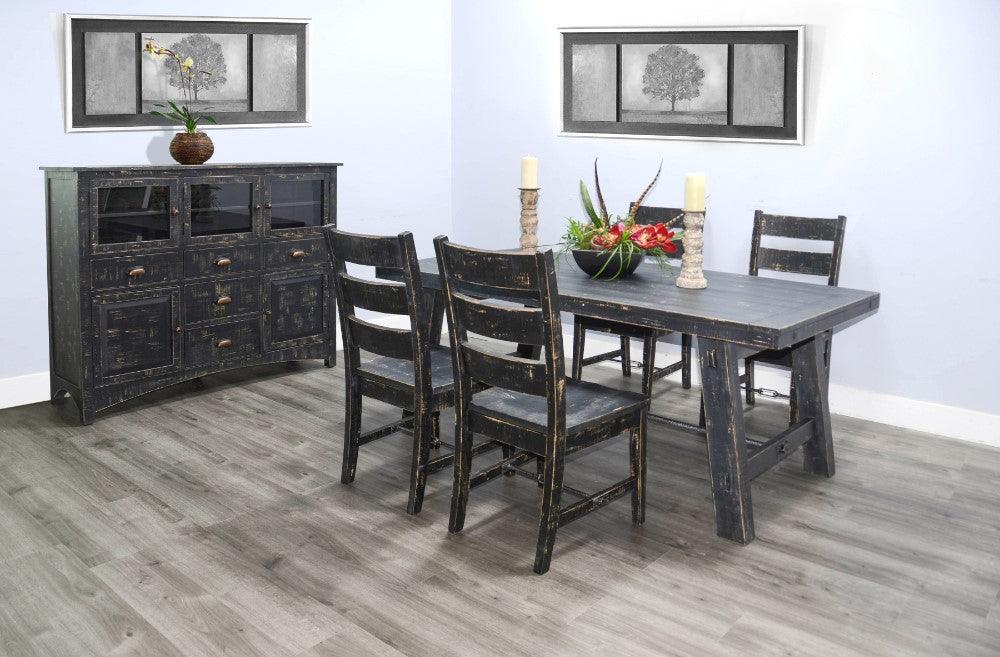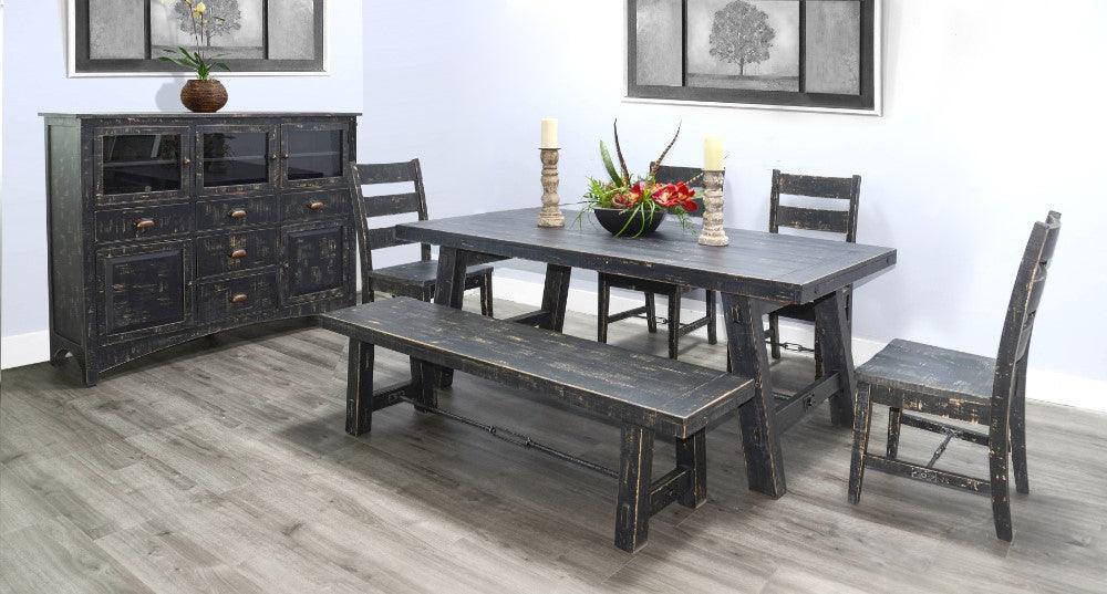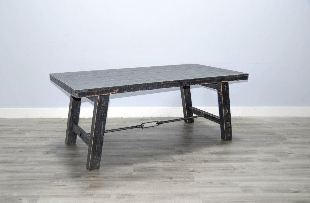 The Black Sand Dining Table is a classic statement of craftsmanship featuring rustic turnbuckle hardware. The Black Sand Dining Table is a timeless piece that showcases the highest level of craftsmanship. Its classic design adds a touch of sophistication to any dining room, making it the perfect statement piece for your home.