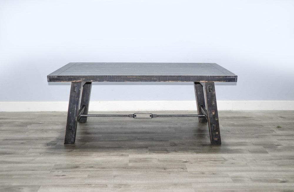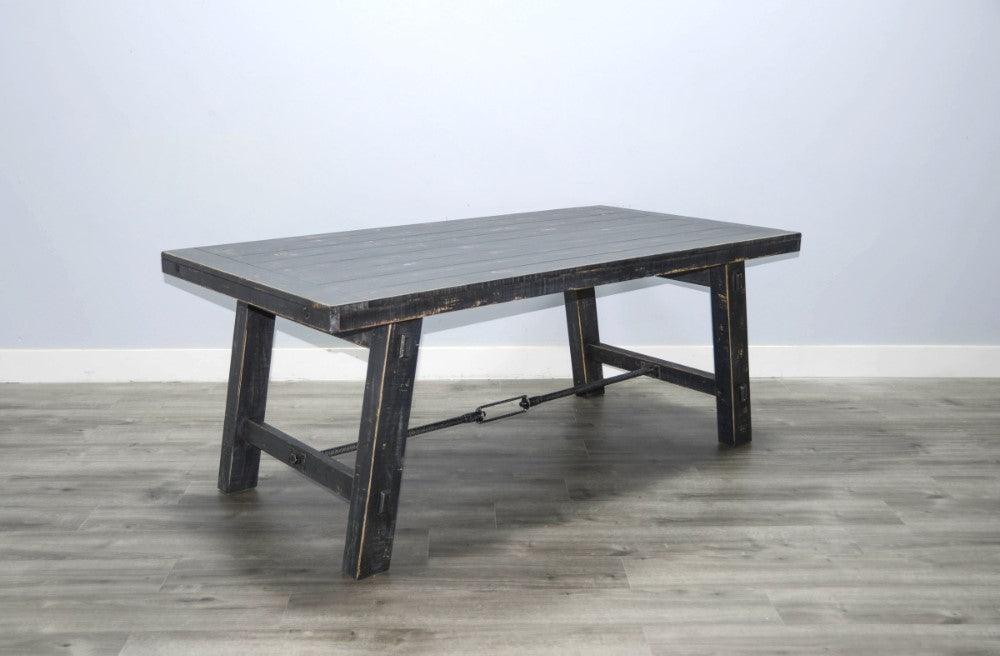 Expertly crafted with solid mahogany and rustic turnbuckle hardware, the Black Sand Dining Table offers a statement of timeless craftsmanship. The versatile design allows you to easily adjust the length from 74" to 96", making it perfect for hosting gatherings and dinner parties. With a sleek black finish, this table is a sophisticated addition to any dining room.