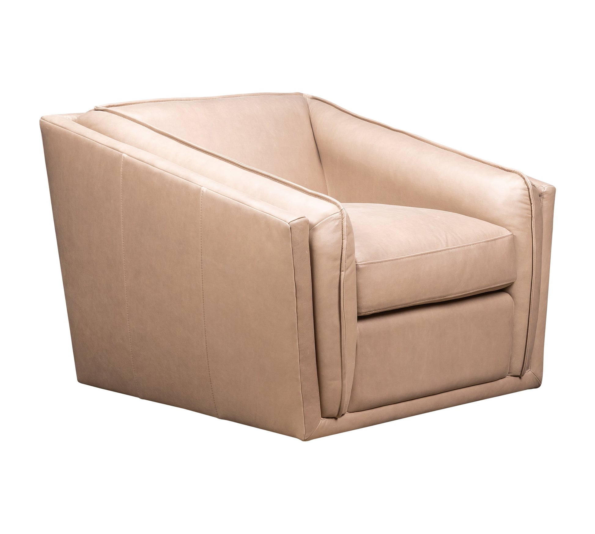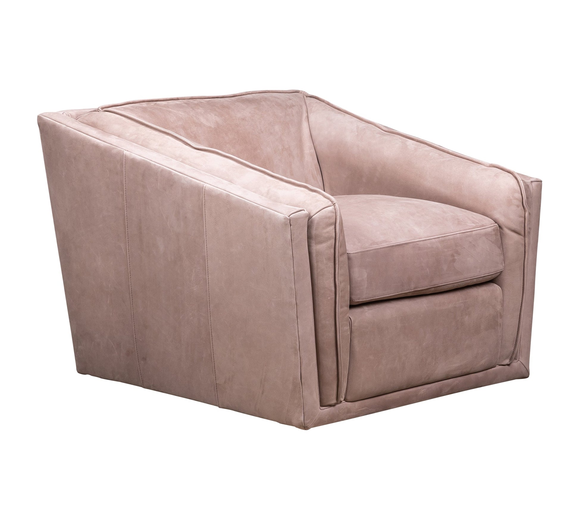 The Bleeker Swivel Chair is available in Anniston Marble, Hepburn Taupe, and Hepburn Fern finishes, offering a perfect blend of comfort and style. This chair is designed with a cushioned seat and a suede-like texture (available in nubuck option) that ensures comfort, while its angular shape and modern design make it a standout in contemporary interiors. The swivel seat provides 360-degree rotation, adding functionality to its sleek appearance. Crafted with high-quality leather, foam, and wood, this chair is built for durability and long-lasting comfort. Whether placed in a living room, home office, or any room in need of a stylish touch, the Bleeker Swivel Chair seamlessly fits into your decor.