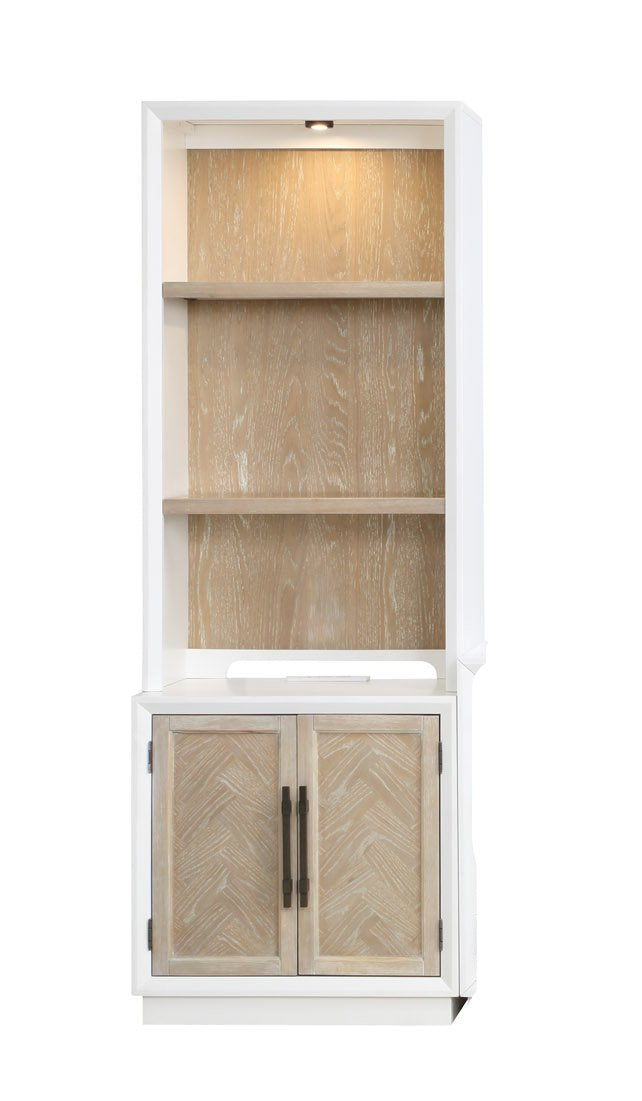The Panama Jack Boca Grande collection embodies the modern lifestyle with a blend of sophistication and casual elegance. This cabinet with hutch highlights contemporary design with its clean lines and high gloss finish, making it a timeless addition to any room. The use of wire brushed oak veneers adds texture, while the white and brown color palette offers versatile styling options. This piece is crafted from rubberwood solids, oak veneers, and MDF, ensuring durability and quality. It's perfect for those who appreciate both style and functionality in their furniture.
