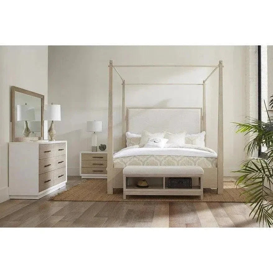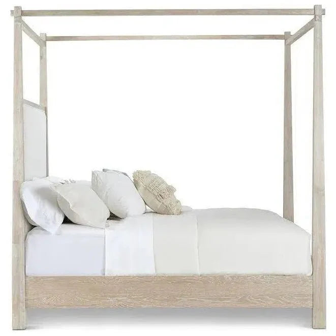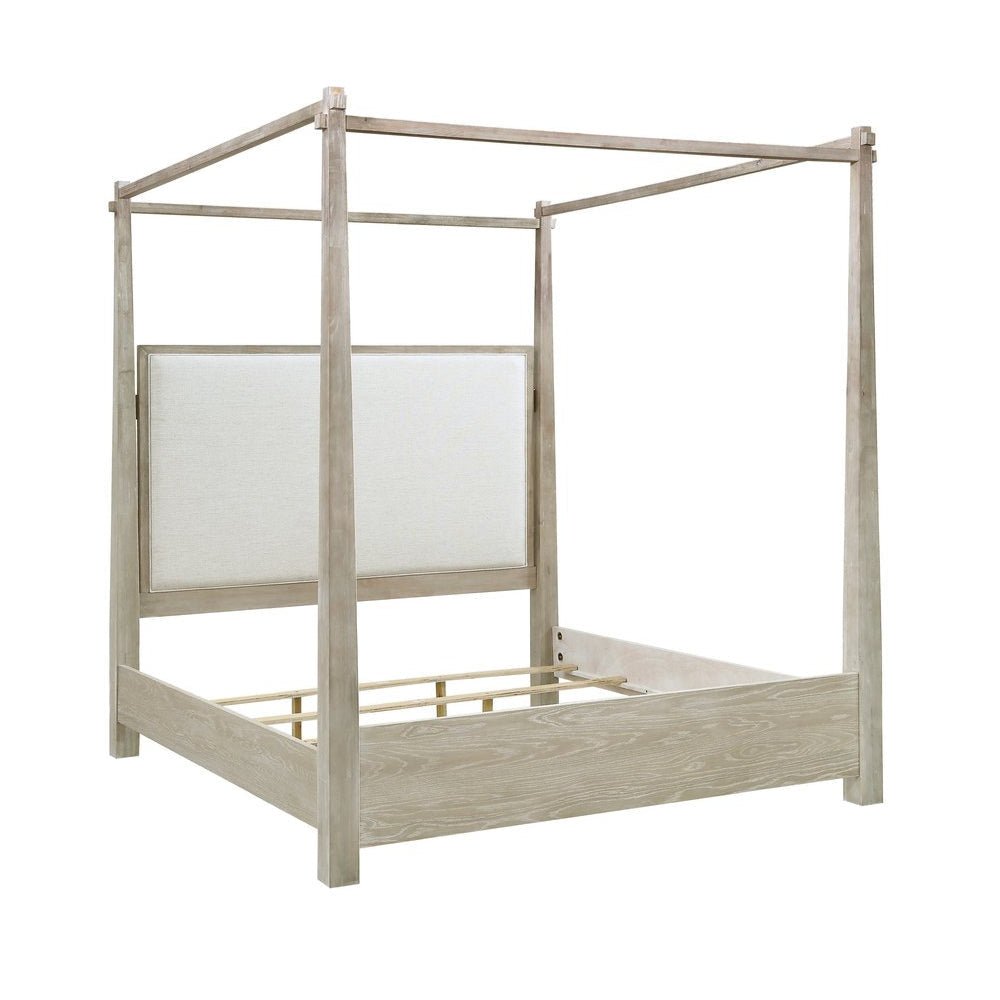 White Accents Solid Wood Boca Grande Upholstered Canopy Bed Features: