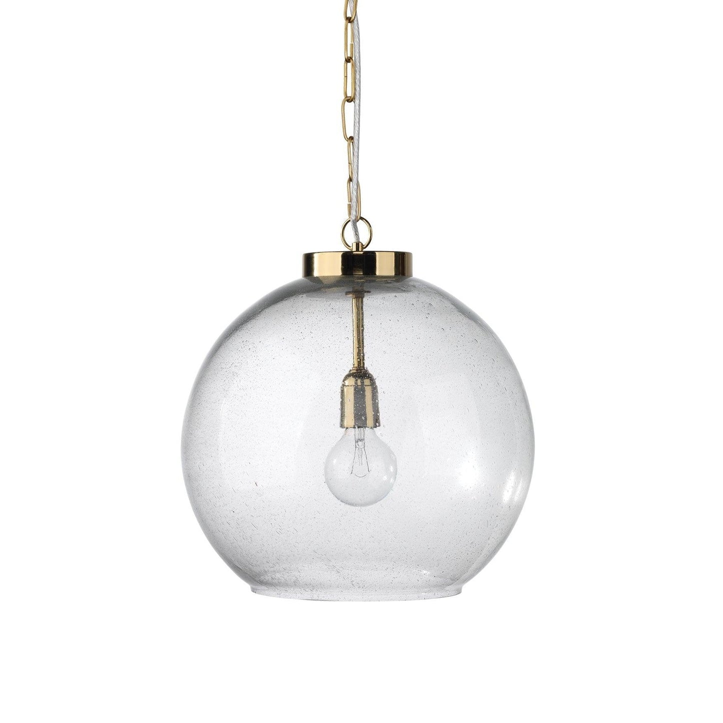 Transform any space into a gallery of industrial luxury with our Brass & Glass Luca Pendant. The mouth-blown seeded glass globe adds sophistication, while the antique brass finish hardware exudes timeless elegance. Illuminate with artistic flair, impressing even the most discerning guests. Industrial Modern loft style pendant with a mouth blown seeded glass globe. Antique brass finish hardware Transform any room into a gallery of industrial luxury with our Brass & Glass Luca Pendant. The intricately mouth-blown seeded glass globe adds a touch of sophistication, while the antique brass finish hardware exudes a sense of timeless elegance. Illuminate your space with artistic flair that will impress even the most discerning of guests.