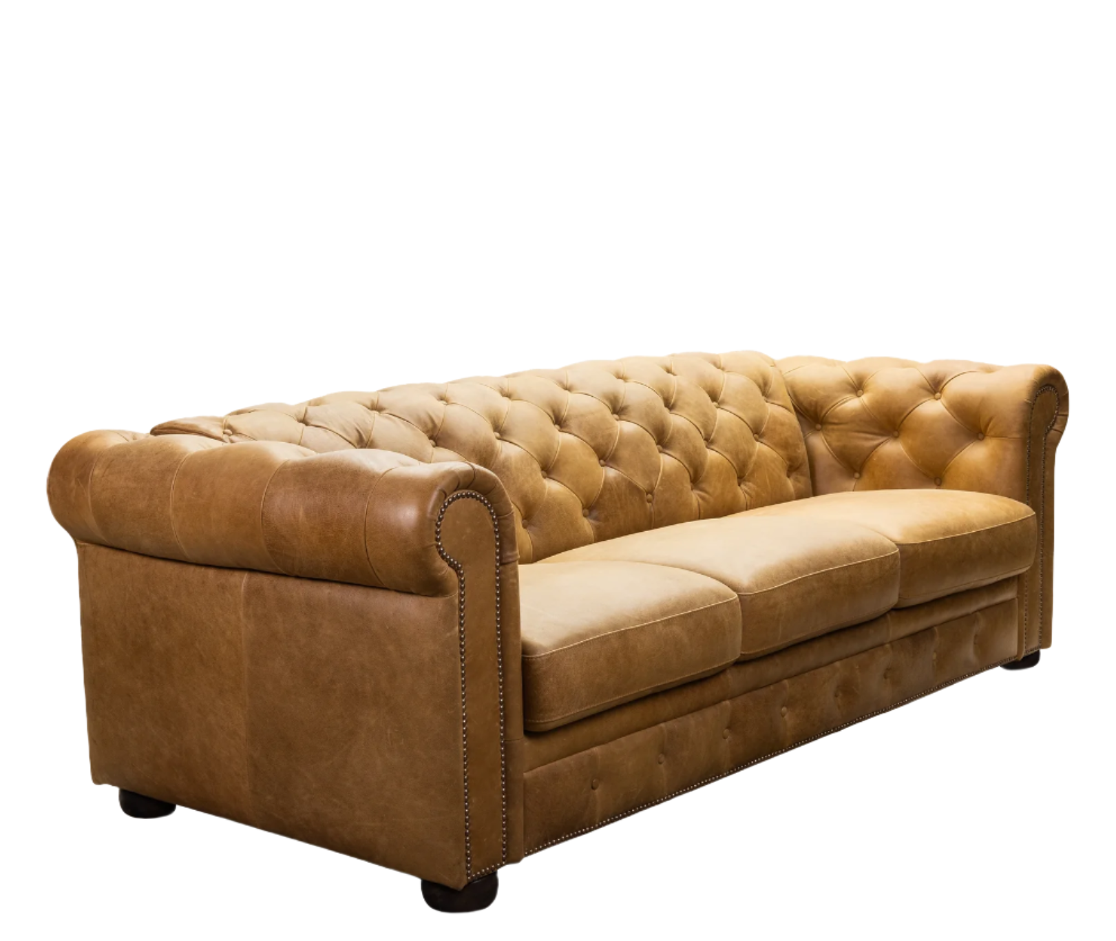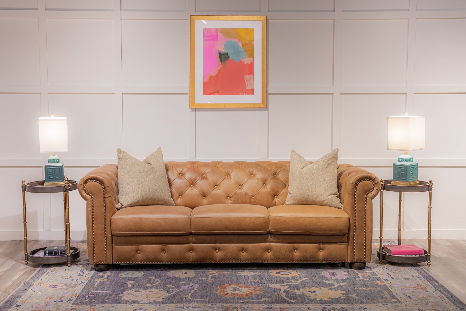 - Design Features: Tufted back, rolled arms, nailhead trim, three-seat capacity