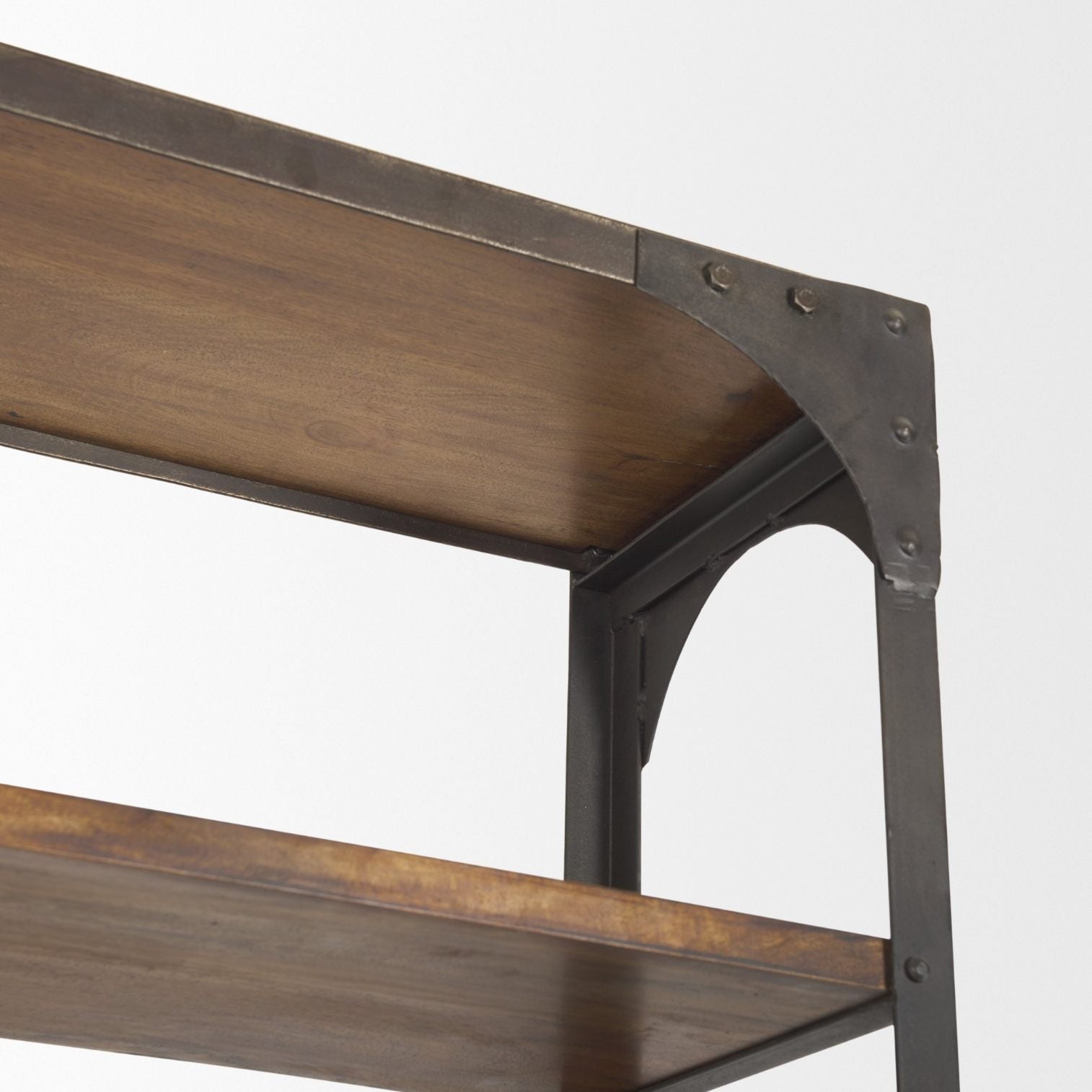 - Expertly crafted from durable wood finished in a dark-brown polish with a black metal frame, the Brodie makes for a versatile and functional shelving unit that ensures all your belongings are securely stored.