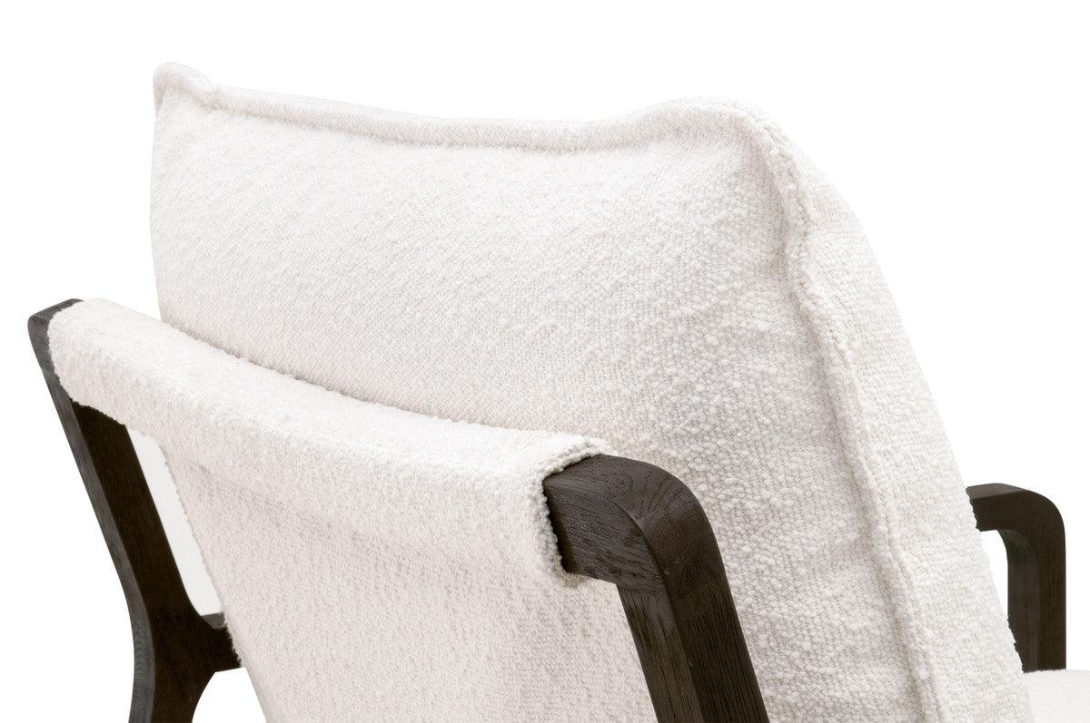 Transform your living space with the opulent Performance Fabric White Boucle Brown Sling Hamlin Club Chair. This enduring piece boasts a sturdy solid wood frame and durable stain-resistant fabric, while the reversible cushions offer versatile flair. The chic matte brown oak wood base and flange cushion edge detail exude sophistication and refinement in your decor. No assembly is necessary for this standout, performance piece. Maintain the high-performance fabric with gentle spot cleaning using a water-based cleaning agent. This snow-white boucle Hamlin Club Chair is crafted with both style and practicality in mind, featuring reversible seat and back cushions and resilient stain-resistant fabric. Elevate your interior with this solid matte brown oak wood, sled base accent chair, showcasing fabric sling support and a flange cushion edge detail.