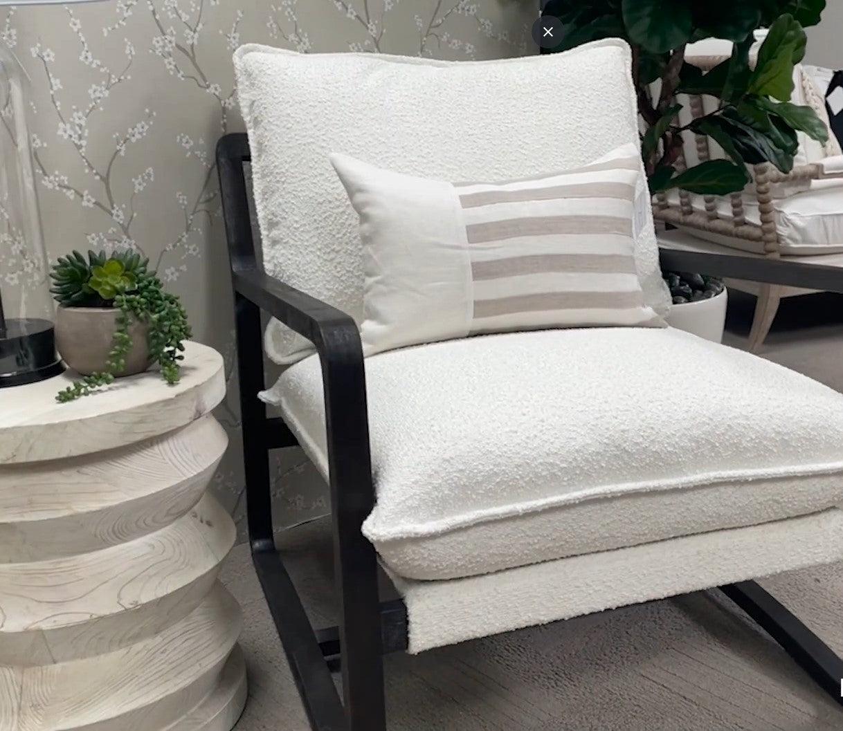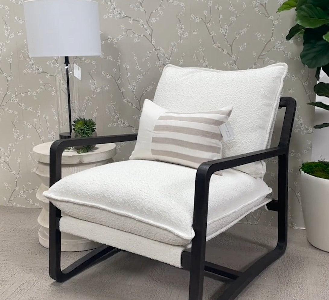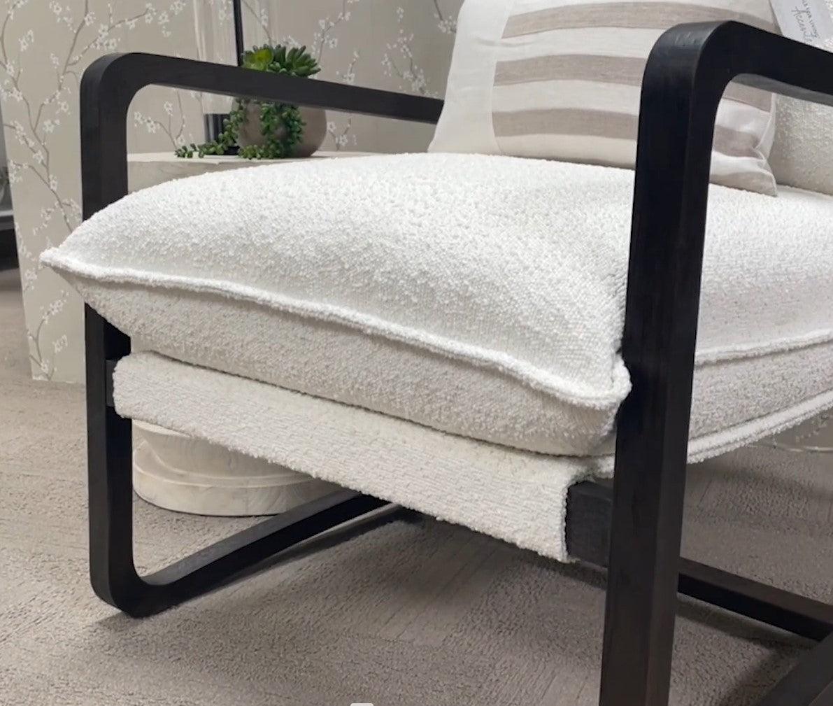 - Upholstery Finish: Snow White Boucle, Stain resistant