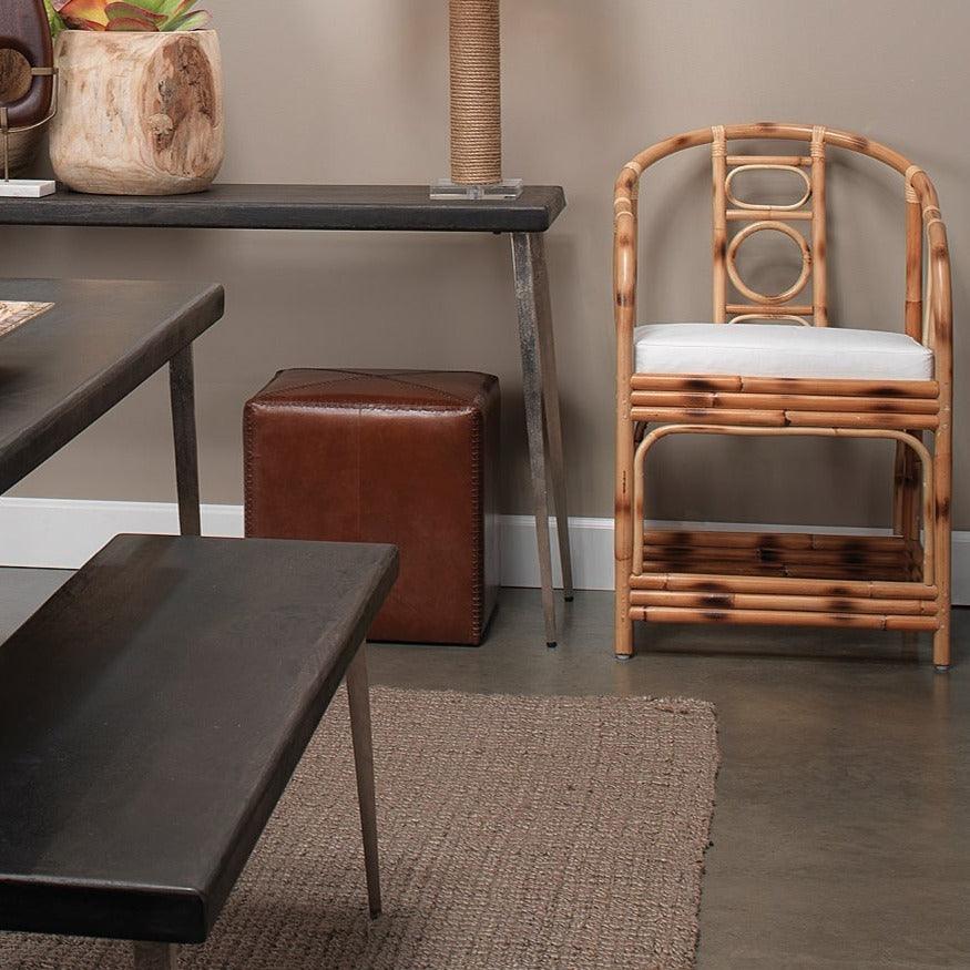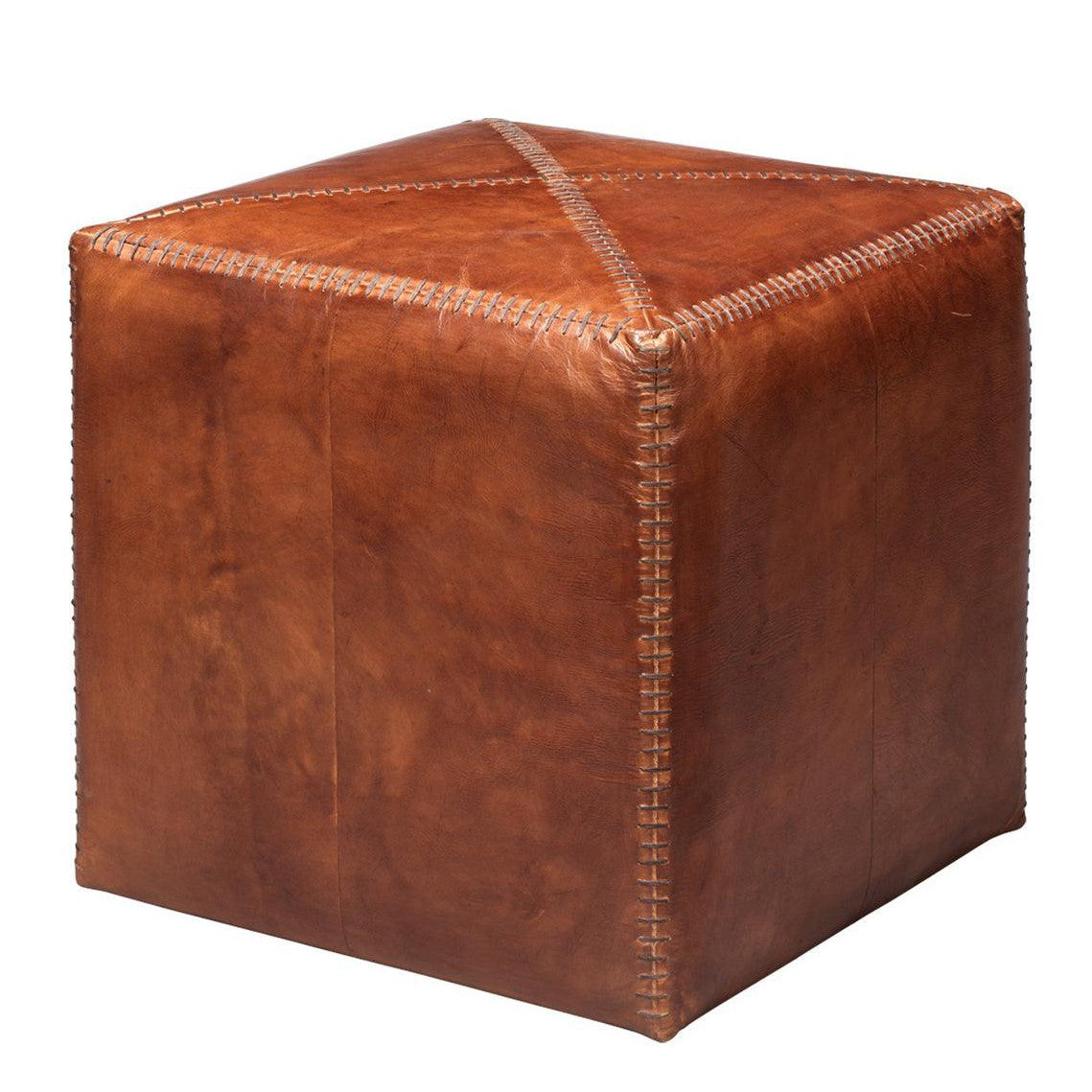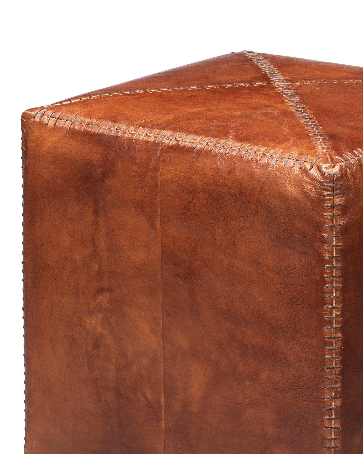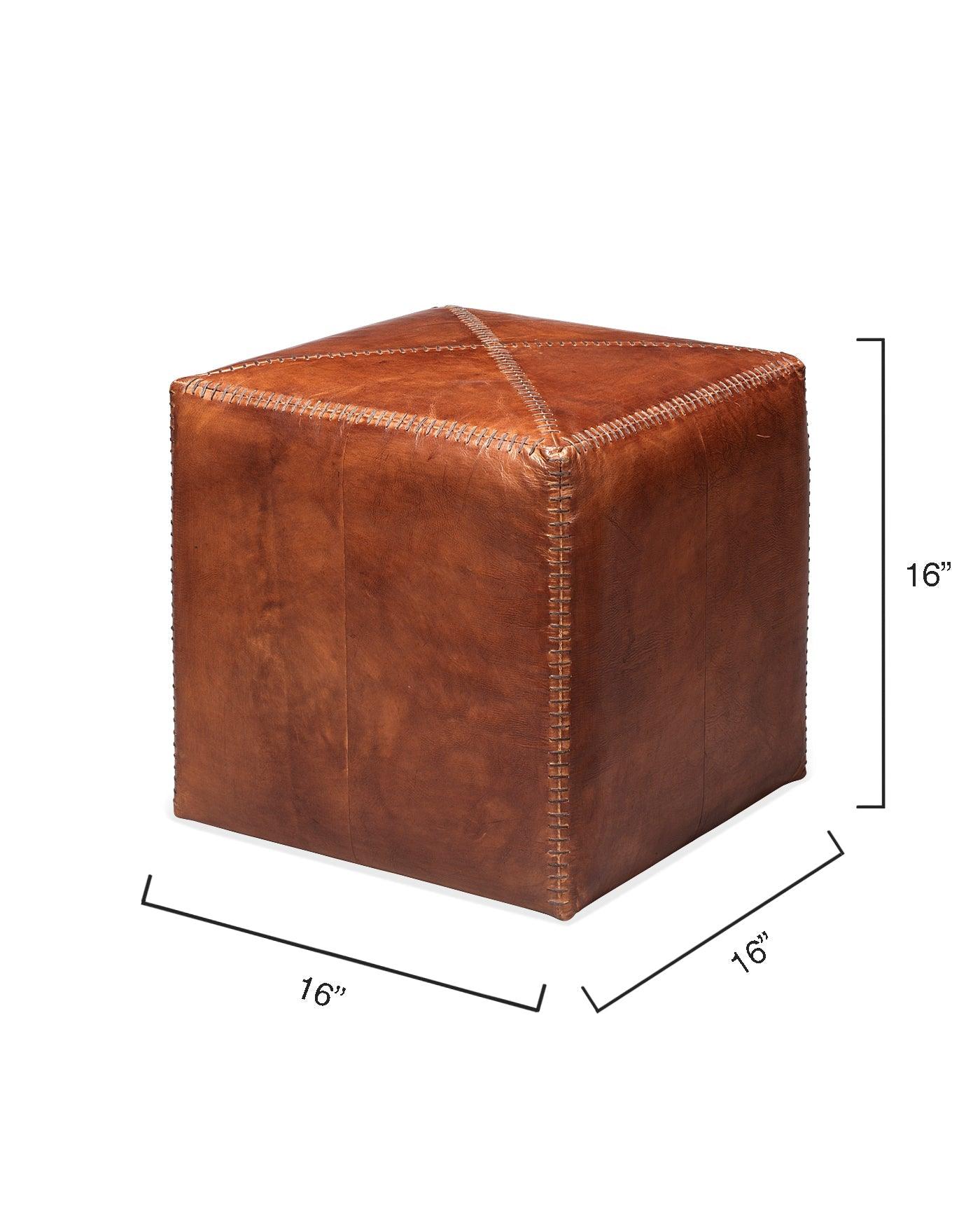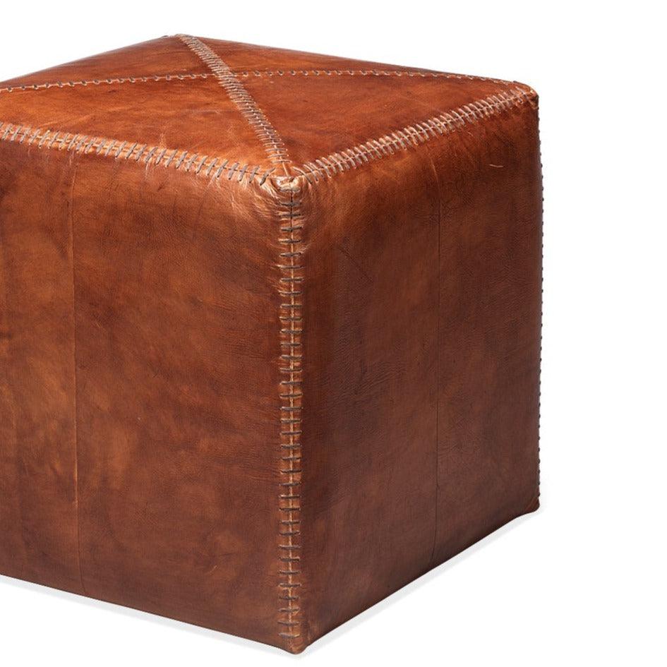 Buff Leather Square Ottoman