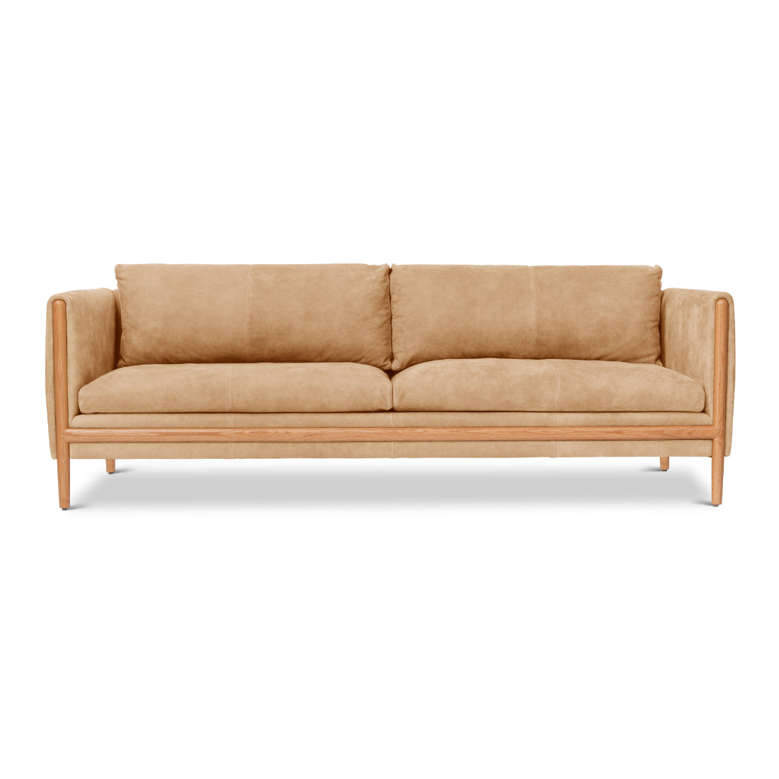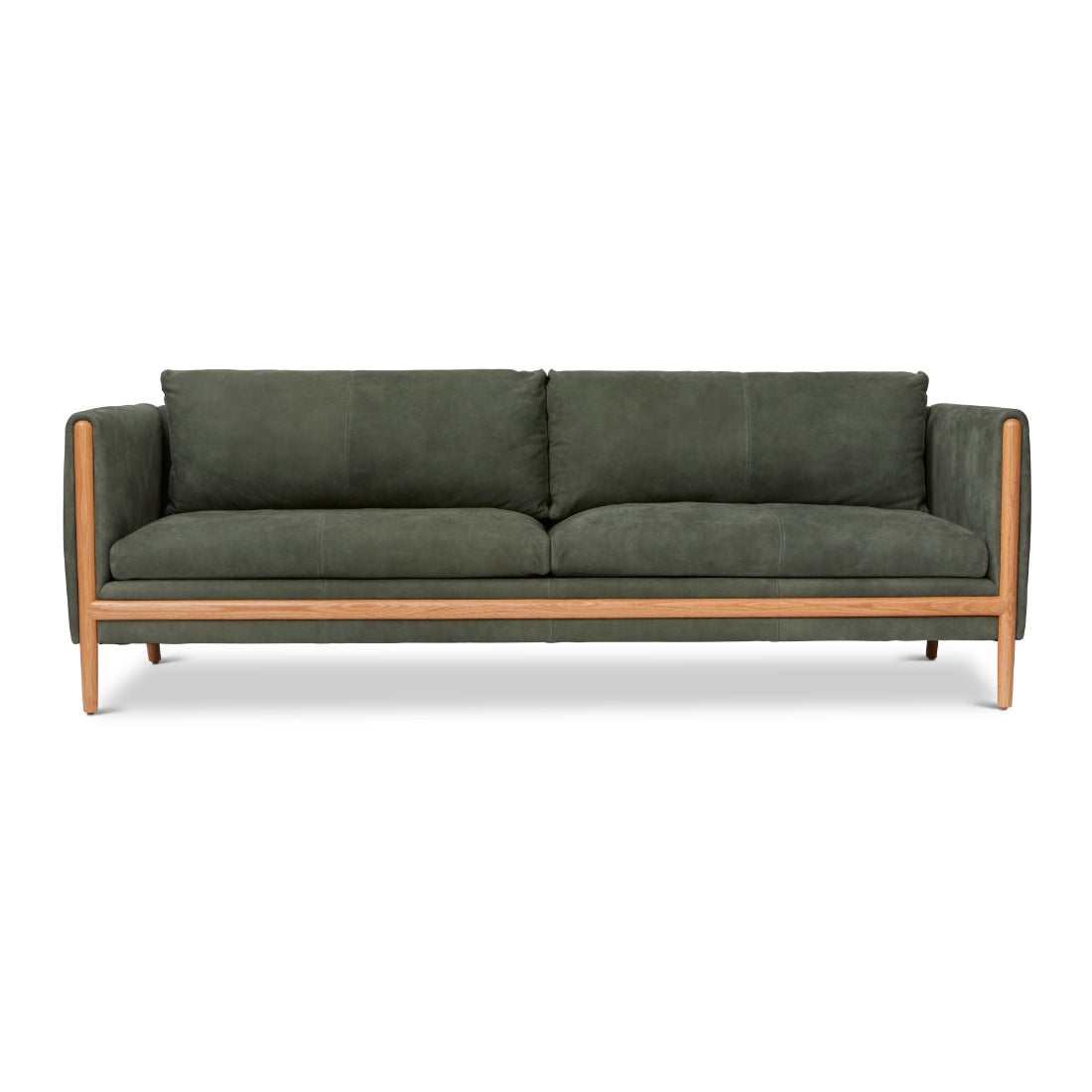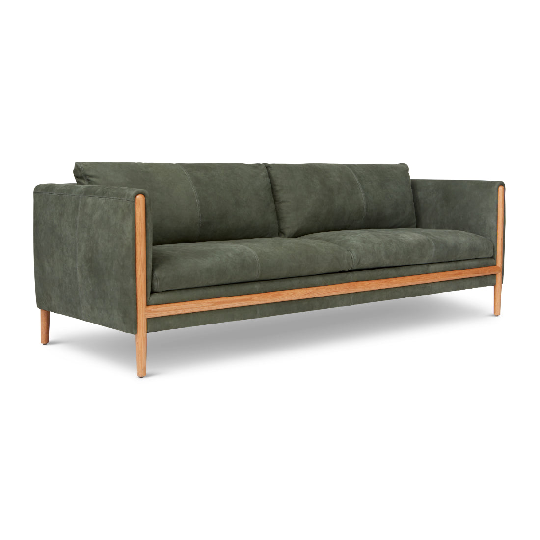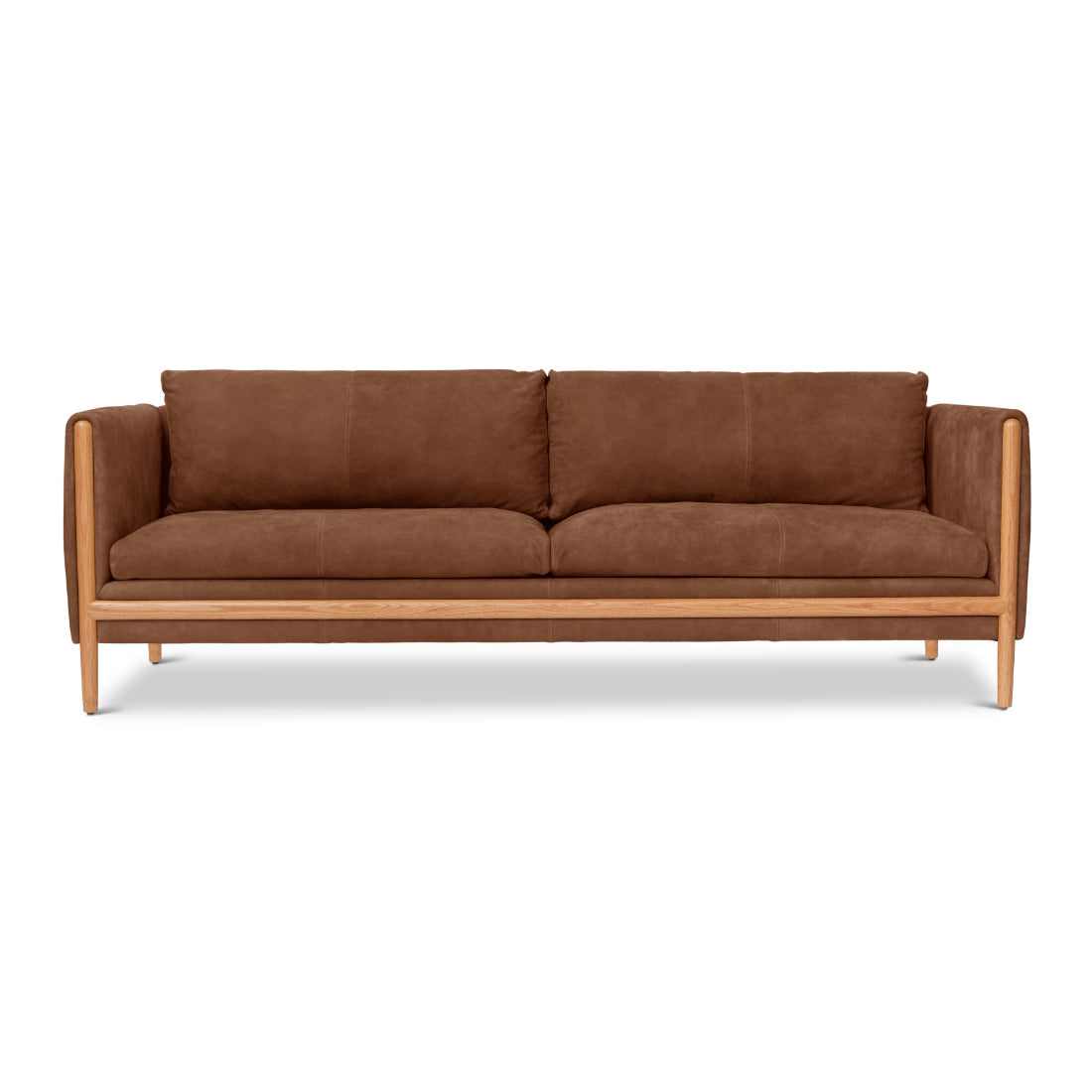 - Frame Material: Hardwood plywood that is encased in a heavyweight chipboard and wrapped in fiber to ensure that the leather is well supported and the frame edges are softly padded.