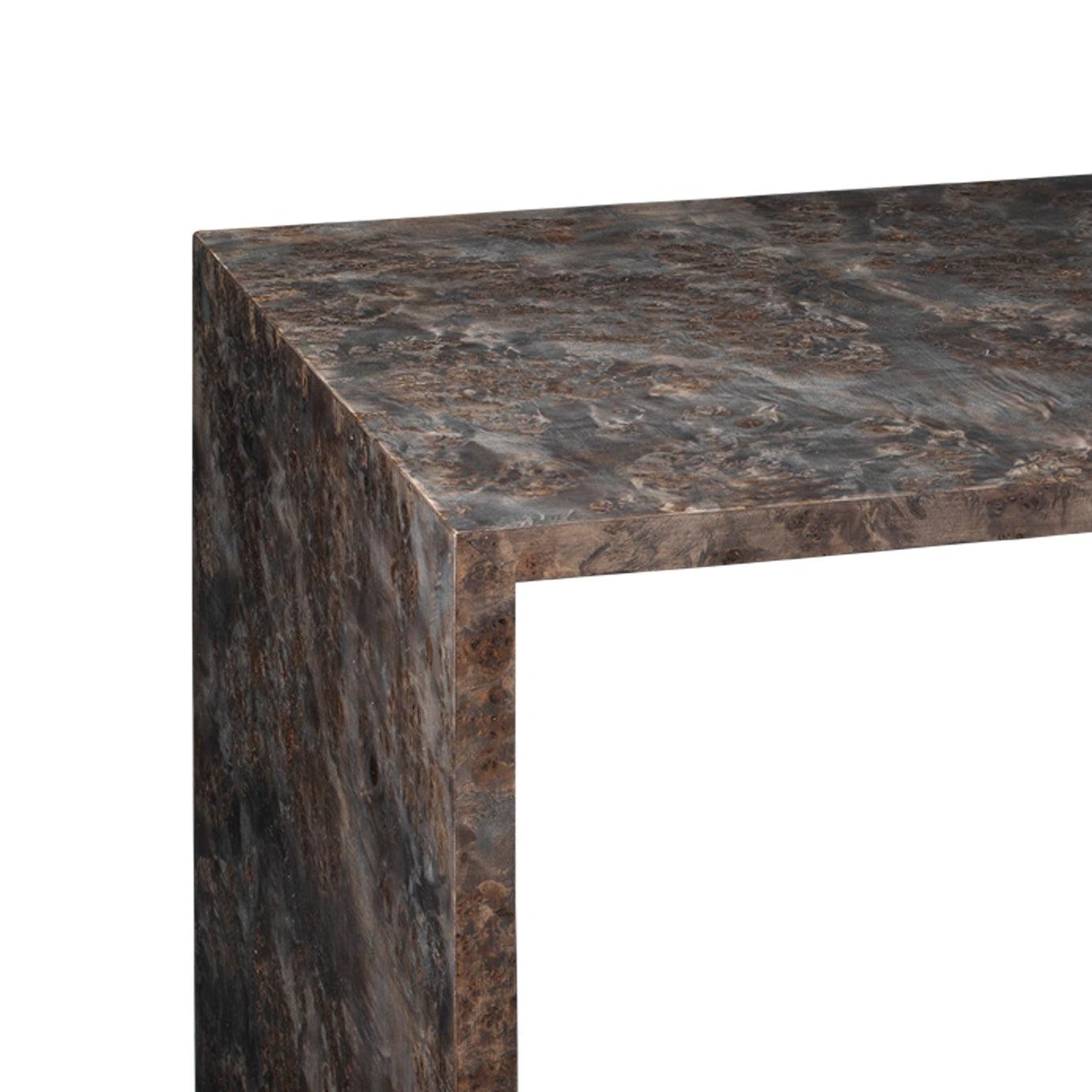 Enhance your home with the Bedford Burl Wood Nesting Tables, a sophisticated set of two that merges organic burl wood veneer with refined Parsons silhouettes. Each table showcases the natural, organic pattern of burl wood finished in either a soft natural brown stain or a delicate charcoal grey stain, bringing understated elegance and timeless charm to any room.