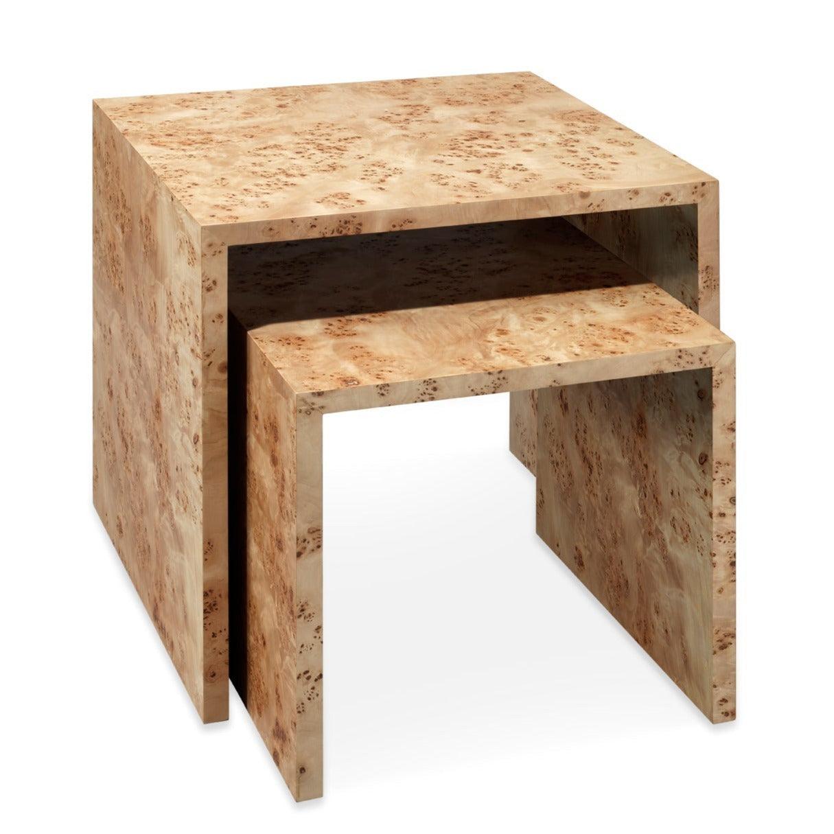 Burl Wood Bedford Nesting Tables (Set of 2) Features: