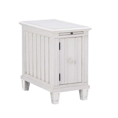 The thoughtful design of the Cane Bay Chairside Table includes a hidden storage cabinet with an adjustable shelf, providing ample space to store your essentials discreetly. A pull-out tray adds convenience, offering extra space for your book or beverages, making it an ideal companion for relaxing evenings. The table's unique shaped wooden knobs, finished in white, add a charming detail to its overall appearance. Further enhancing its style, the table features cut-out bead detailing on its feet, giving it a distinct and sophisticated look.