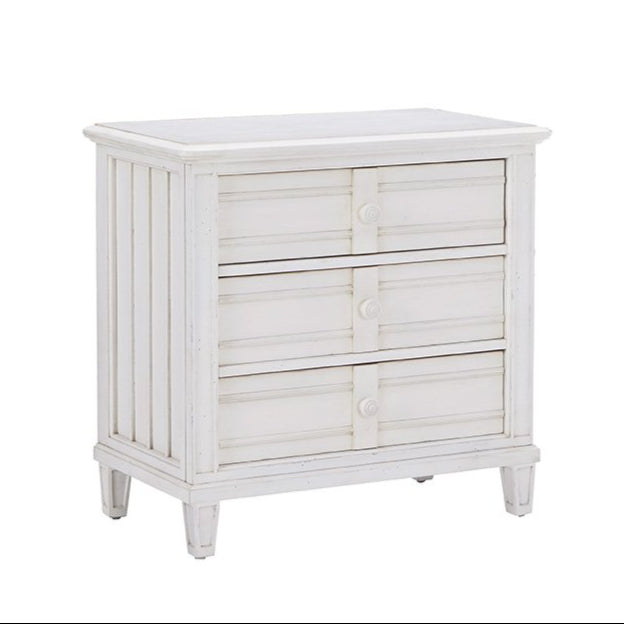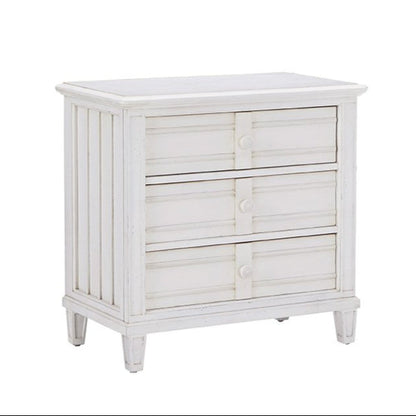 Inspired by the beauty of a tropical paradise, the Cane Bay Nightstand With Smooth Glide Drawers brings a touch of elegance and functionality to any bedroom. Crafted with attention to detail, this nightstand features three spacious drawers, providing ample storage space for your essentials. The combination of rubberwood solids, birch veneer, MDF, and plywood ensures durability and a long-lasting finish. Its clean white color adds a fresh and calming feel to your room decor, making it easy to match with other furnishings.